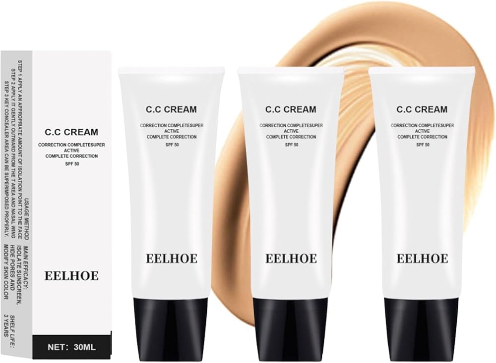3 قطع كريم CC لضبط لون البشرة بعامل وقاية من الشمس 50، كريم CC لمستحضرات التجميل بعامل حماية من الشمس 50، كريم CC لضبط لون البشرة، خافي عيوب البشرة المرطب التمهيدي وتفتيح لون البشرة، تصحيح الألوان ذاتي الضبط للبشرة الناضجة # لون الطبيعة