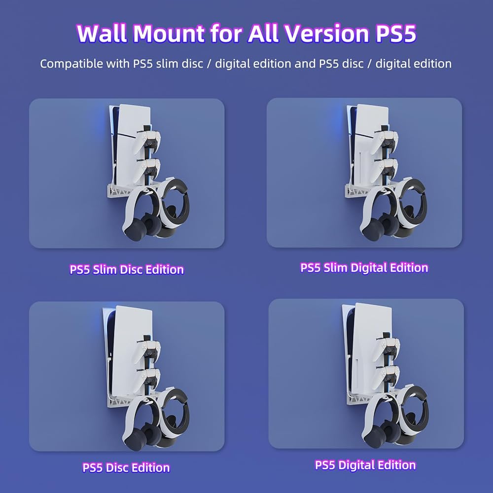 - Specially designed wall mount kit for PS5 and PS5 slim disc digital console