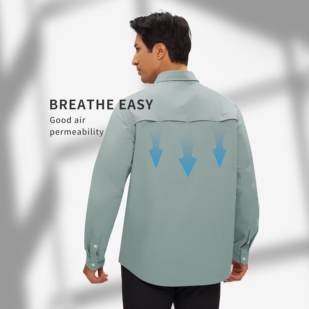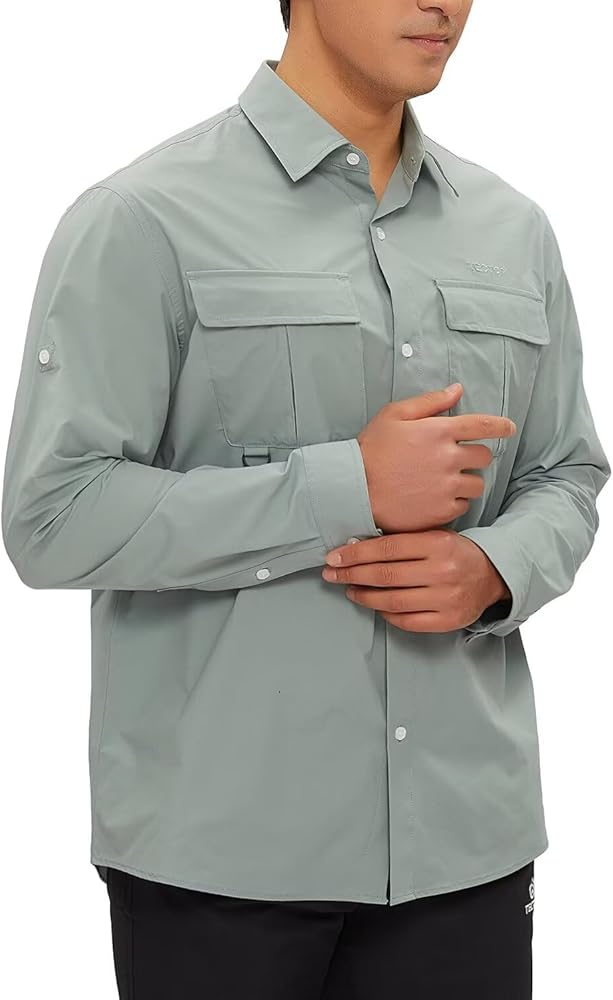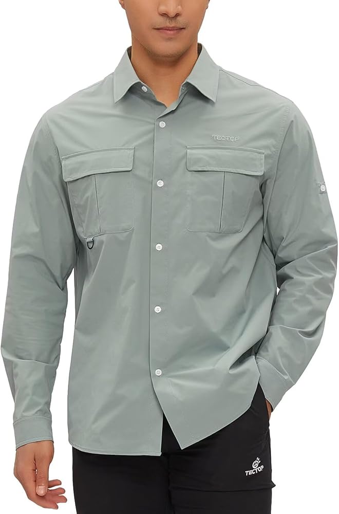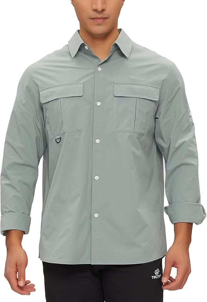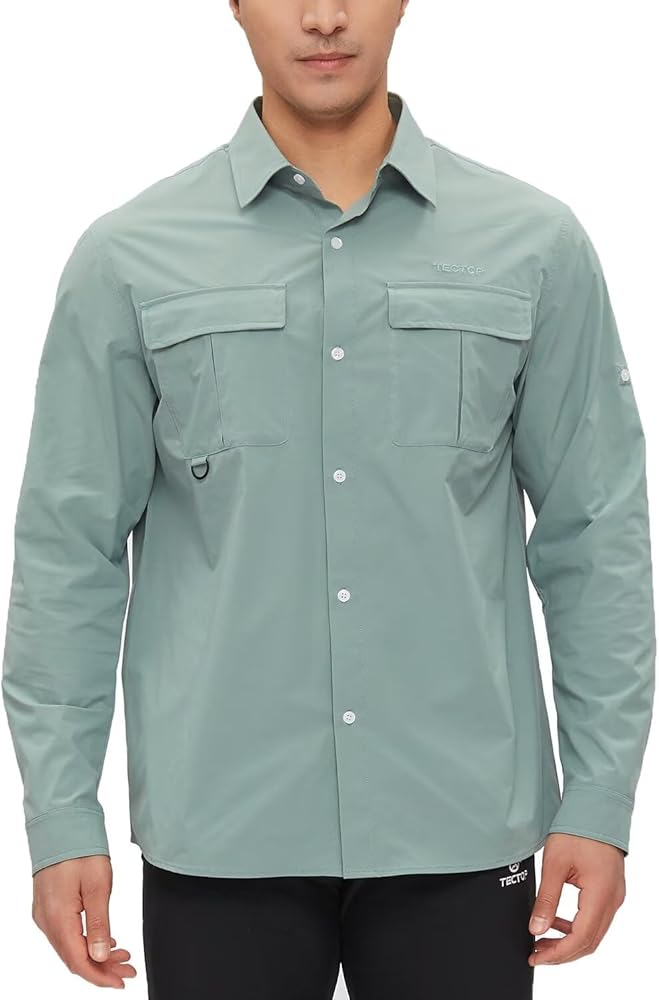 حماية من أشعة الشمس بعامل حماية من أشعة الشمس 50+ وجفاف سريع: تتميز قمصان الحماية من الشمس سريعة الجفاف للرجال من TECTPO بتصنيع بعامل حماية من أشعة الشمس 50+ للحماية من الأشعة الضارة بالإضافة إلى نسيج مسامي وخفيف الوزن وممتص يسحب الرطوبة بعيدًا ليبقيك منتعشًا وجافًا، وهو مثالي لصيد الأسماك والتخييم المشي لمسافات طويلة، والسفر، والتسلق، وأي أنشطة في الهواء الطلق وما إلى ذلك.