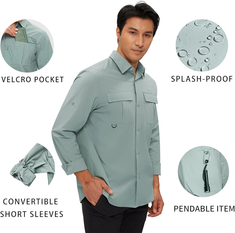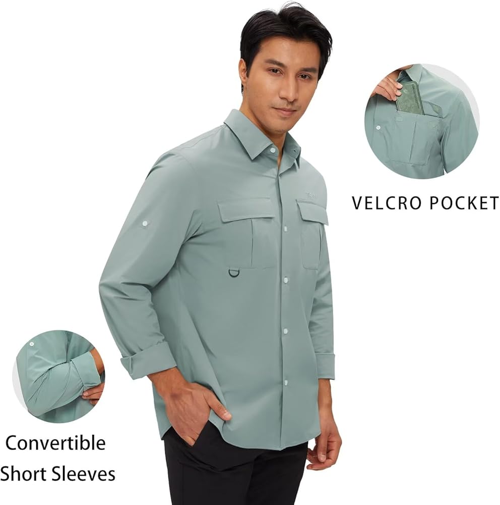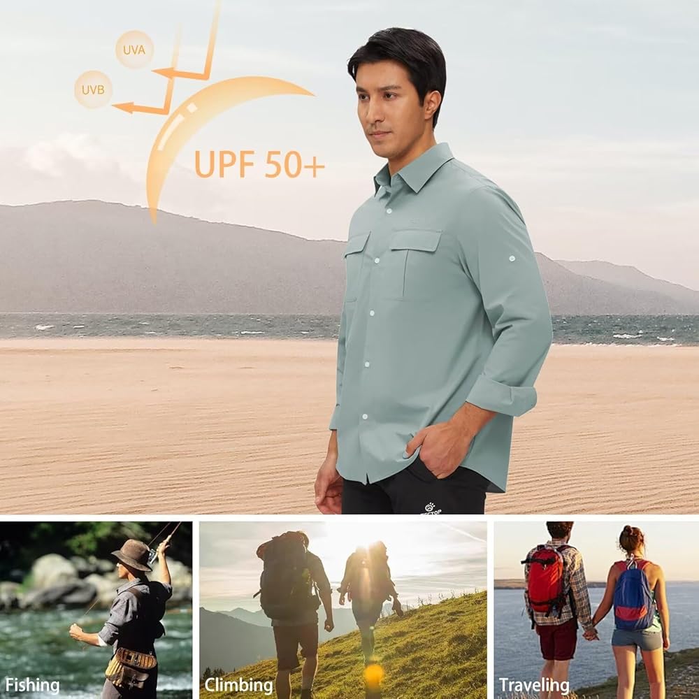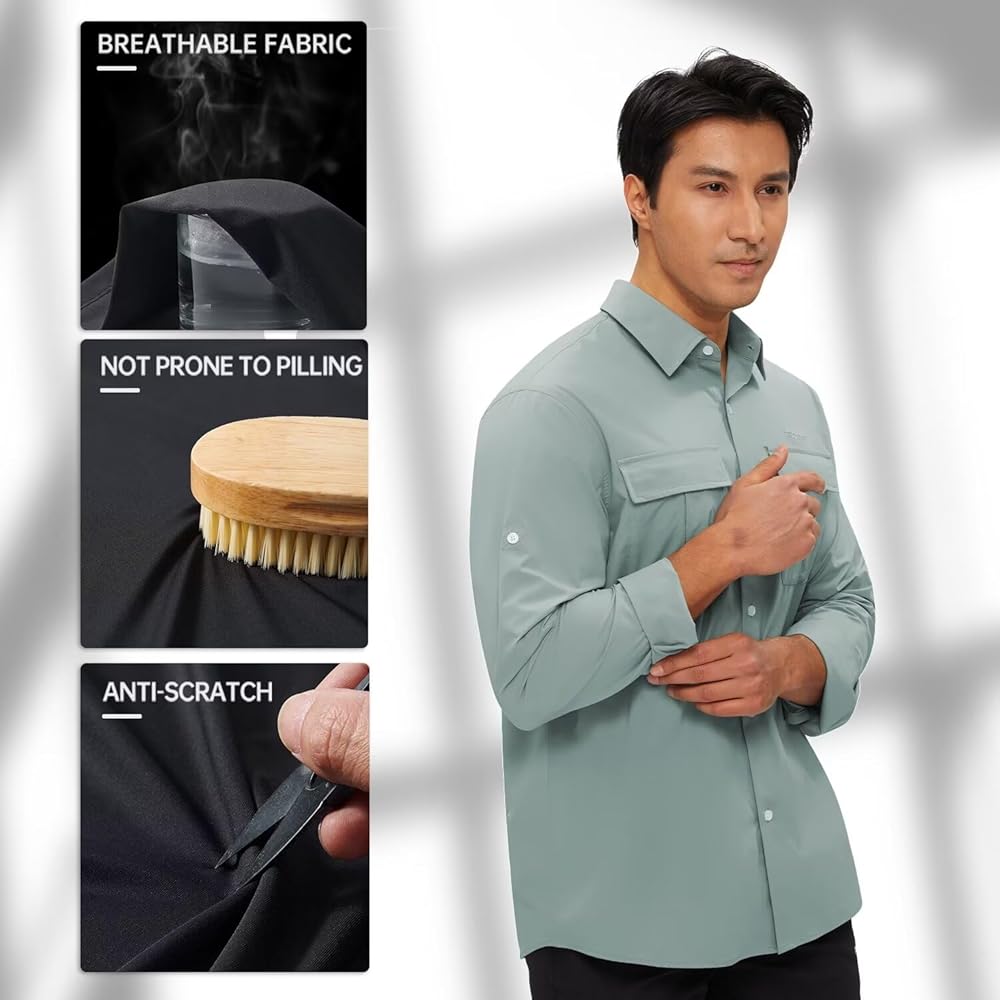 حماية من أشعة الشمس بعامل حماية من أشعة الشمس 50+ وجفاف سريع: تتميز قمصان الحماية من الشمس سريعة الجفاف للرجال من TECTPO بتصنيع بعامل حماية من أشعة الشمس 50+ للحماية من الأشعة الضارة بالإضافة إلى نسيج مسامي وخفيف الوزن وممتص يسحب الرطوبة بعيدًا ليبقيك منتعشًا وجافًا، وهو مثالي لصيد الأسماك والتخييم المشي لمسافات طويلة، والسفر، والتسلق، وأي أنشطة في الهواء الطلق وما إلى ذلك.
