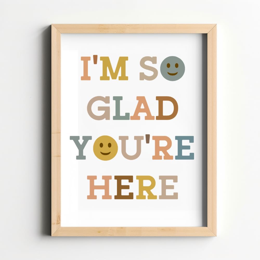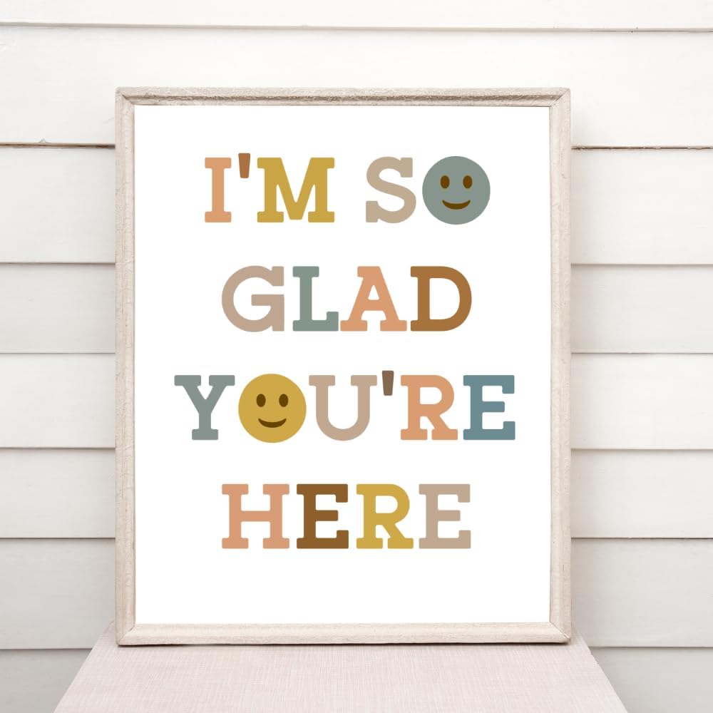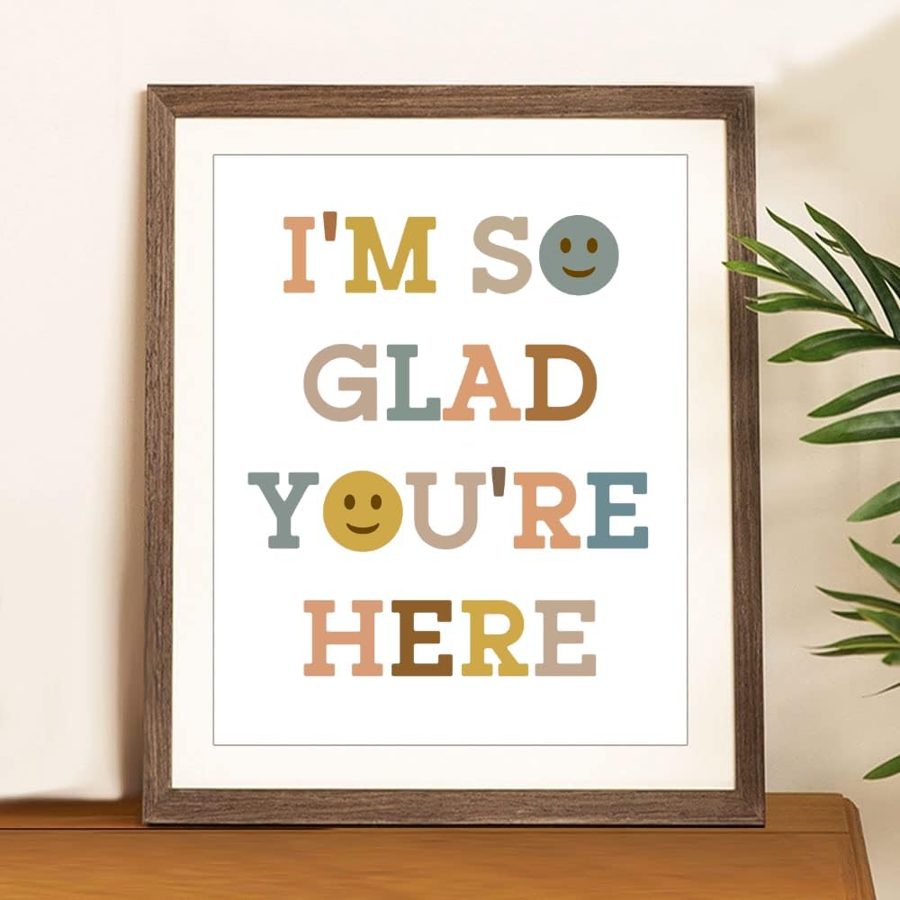 ديكور الفصل الدراسي Wowsweet-Boho، أنا سعيد جدًا لأنك هنا، ديكور الفصل الدراسي، كن لطيفًا، وجه سعيد، فن جداري تحفيزي، ديكور غرفة اللعب، فن الطفل، هدية المعلم، فن حائط ملهم (8X10 بوصة)