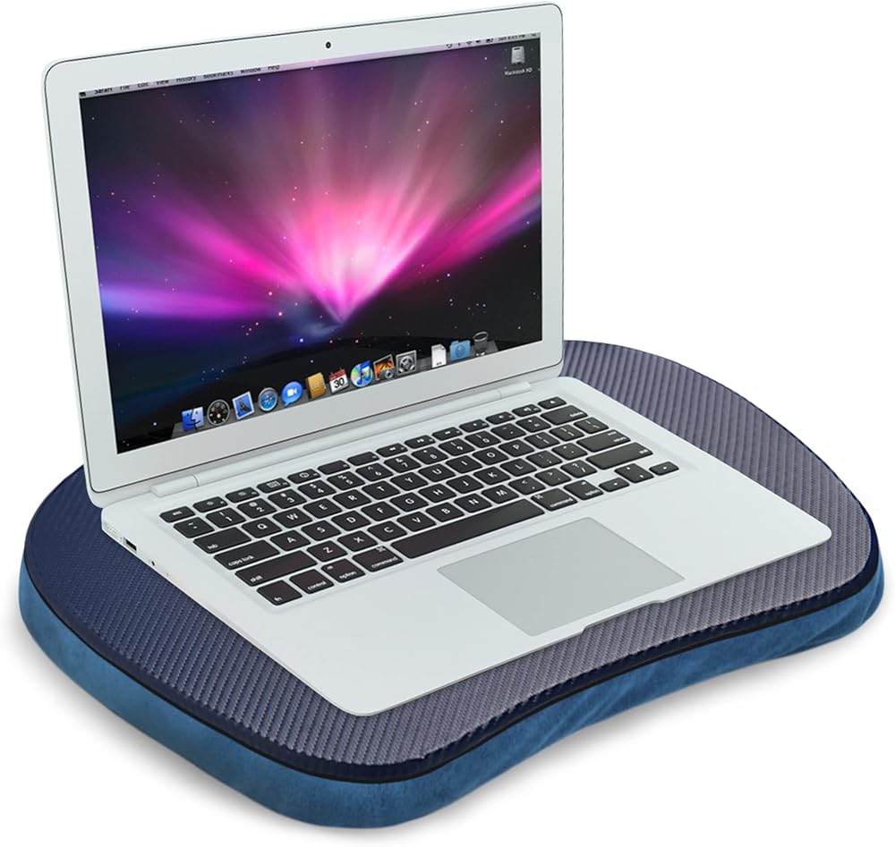 مكتب لاب توب - مكتب لاب توب محمول مع وسادة وسادة، يناسب كمبيوتر محمول يصل إلى 15.6 بوصة لطلاب المكاتب المنزلية الذين يستخدمون كحامل كمبيوتر محمول أو كمبيوتر لوحي (1-أزرق داكن)
