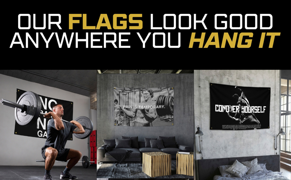 نابضة بالحياة وواضحة: تتميز أعلام الصالة الرياضية لدينا بتصميم ملون مفعم بالحيوية والنابضة بالحياة. باستخدام تقنية الطباعة المتقدمة، تظل الصور الموجودة على العلم واضحة تمامًا في أي إضاءة. من المناطق منخفضة الإضاءة إلى المساحات جيدة الإضاءة، فإن وضوح هذا العلم لا يمكن قهره. إنه علم المرآب المثالي، أو علم صالة الألعاب الرياضية، أو علم صالة الألعاب الرياضية المنزلية، مما يشع التحفيز أينما تم تعليقه.
