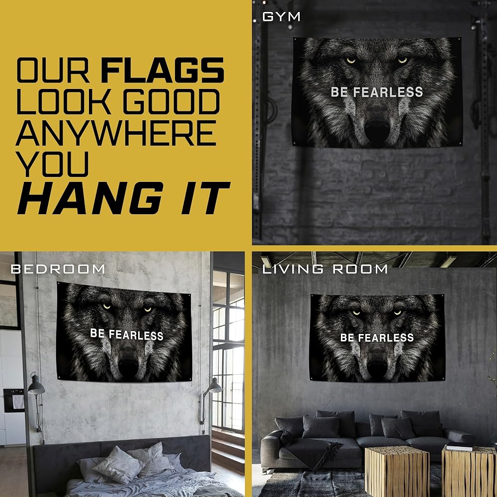 "هدية الإلهام: يحتضنها الطلاب ورجال الأعمال وعشاق صالة الألعاب الرياضية والأصدقاء وكمال الأجسام، هذه الهدية لها صدى واسع. مثالية للتحفيز أو الامتنان أو عيد الميلاد، فهي تكمل صالات الألعاب الرياضية والمكاتب والمساكن وكهوف الرجال، وتعمل كعلم صالة الألعاب الرياضية أو لوحة فنية جدارية تحفيزية، أو علم غرفة النوم، مثالية للمستلمين والمساحات المتنوعة!
