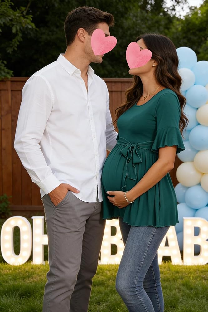 المناسبات-- قمصان الحمل قصيرة الأكمام للنساء يسهل تنسيقها مع الجينز أو السراويل الضيقة أو السراويل القصيرة أو السراويل أو التنانير، وهي جذابة ومريحة للغاية. عندما يكون الطقس باردًا، فهو مثالي لمطابقة السترات والسترات والمعاطف. مناسب للعمل اليومي، والمواعدة، وحفلات استقبال المولود الجديد، والتقاط الصور، وحفلات الزفاف، والحفلات، والمناسبات الرسمية والعادية. هدية حامل مثالية لزوجتك الحامل أو أخواتك أو أصدقائك. سيحبون قمصان الحمل الأنيقة هذه والتي يمكنهم البقاء معها خلال فترة الحمل وبعد الولادة.