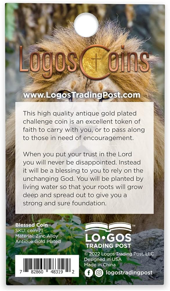 • ثق في عملة تحدي الرب الأسد: عندما تضع ثقتك في الرب، فلن تشعر بخيبة أمل أبدًا. وبدلاً من ذلك، سيكون الاعتماد على الله الذي لا يتغير بمثابة بركة. ستُزرع بالمياه الحية فتنمو جذورك عميقاً وتنتشر لتعطيك أساساً قوياً وأكيداً.
