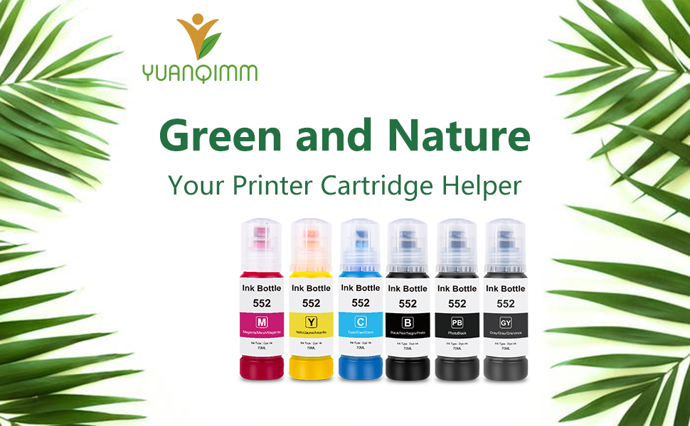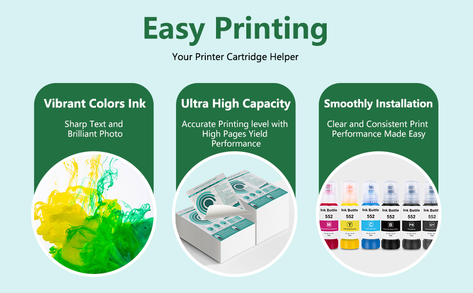 تصميم مثالي: زجاجات الحبر T552 552 مع حبر إيقاف تلقائي بتصميم ملائم تمامًا، لا ينسكب، يسهل ملؤه، ويبقى باردًا، تساعدك على الطباعة بسهولة، وتعمل كما يفعل صانع المعدات الأصلية (ليس حبر التسامي)