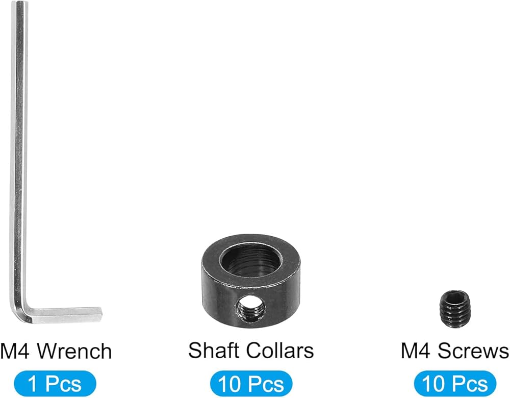 In the package of : 10 Pcs x Shaft Collar with M4 Screws and 1 Pcs x M4 Wrench
