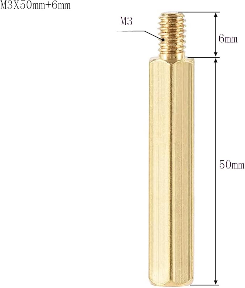 【Thread Size】: M3,Single hex head with male female type screw threaded, Material: Brass, Color: Gold.