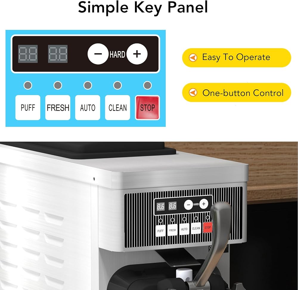 لوحة LED الذكية: تم تجهيز ماكينة صنع الآيس كريم الناعمة بشاشة LED وأزرار سهلة، مما يوفر تحكمًا مباشرًا ومراقبة لكمية الآيس كريم وصلابته ودرجة حرارته.