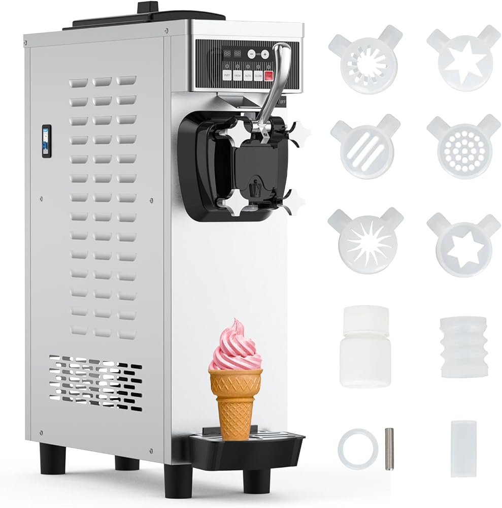 صانع الآيس كريم التجاري، 4.7-5.8 جالون/ساعة، آلة صنع الزبادي والآيس كريم الناعمة على سطح المنضدة مع لوحة LED ذكية وتنظيف تلقائي، مثالية للحفلات ومطعم الوجبات الخفيفة