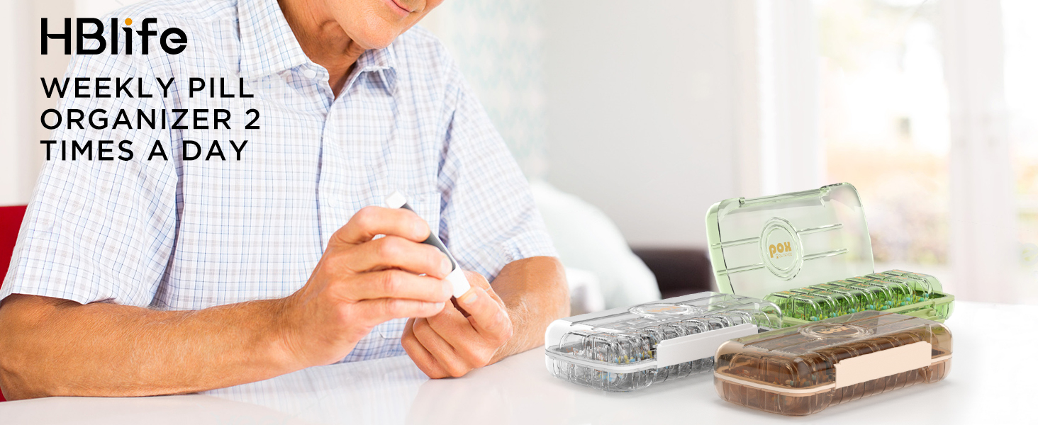 منظم وموزع حبوب الدواء الأسبوعي من HBlife مرتين في اليوم، حاوية صندوق حبوب السفر يوميًا صباحًا ومساءًا 7 أيام للفيتامينات والأدوية والمكملات الغذائية وزيت السمك، حافظة مقسمة طبية مقاومة للغبار (شفاف)