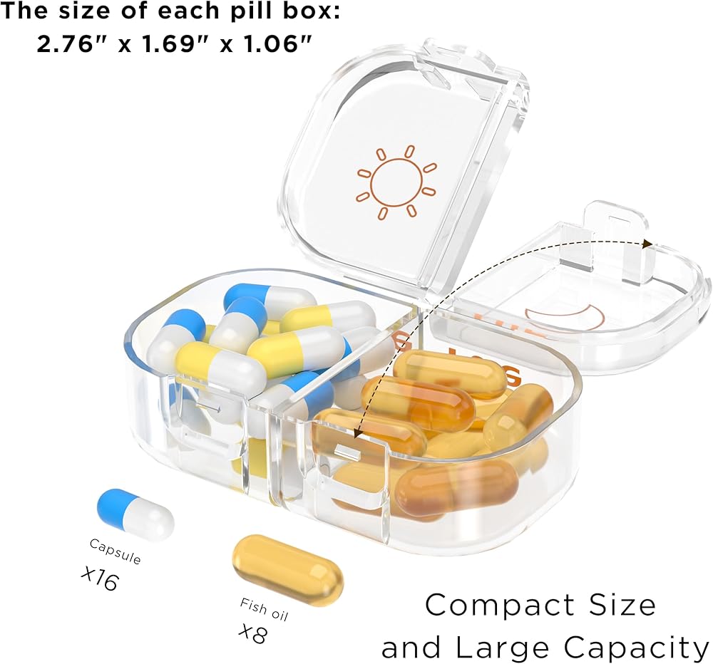 تذكير يومي صباحًا ومساءً: بفضل تصميمه مرتين في اليوم، يساعدك منظم حبوب الدواء هذا على البقاء منظمًا من خلال توفير مساحات منفصلة لجرعاتك الصباحية والمسائية. يحتوي كل يوم على صندوق أقراص صغير قابل للإزالة، مما يسمح لك بحمل الدواء الذي تحتاجه لهذا اليوم فقط.