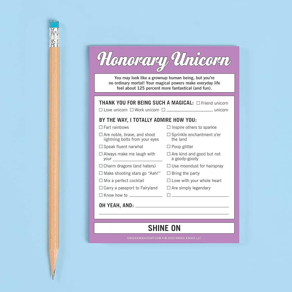 Use this pad to salute the magical creatures in your life, whether they're friends, family, coworkers, or baristas. All hail the golden horn!