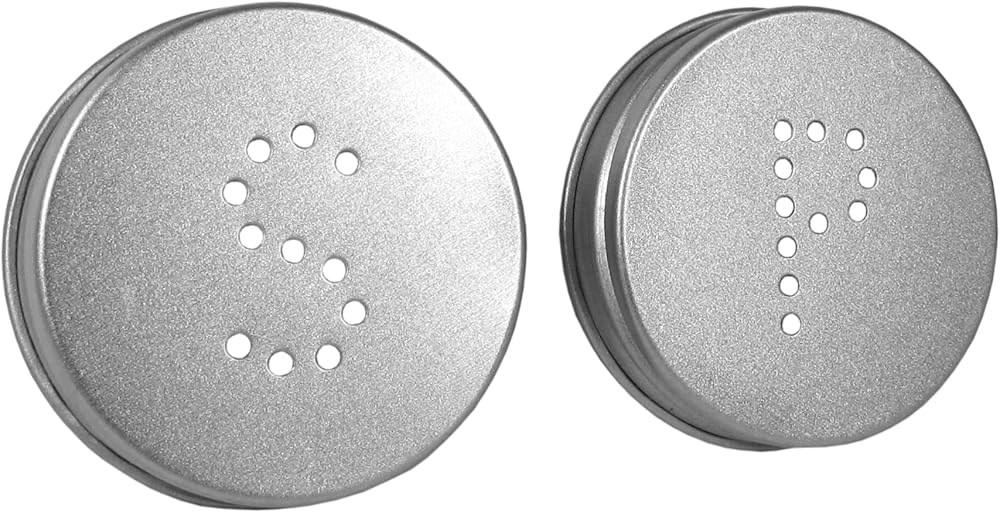 2 Glass Shakers with screw top lids that feature a P and S design
