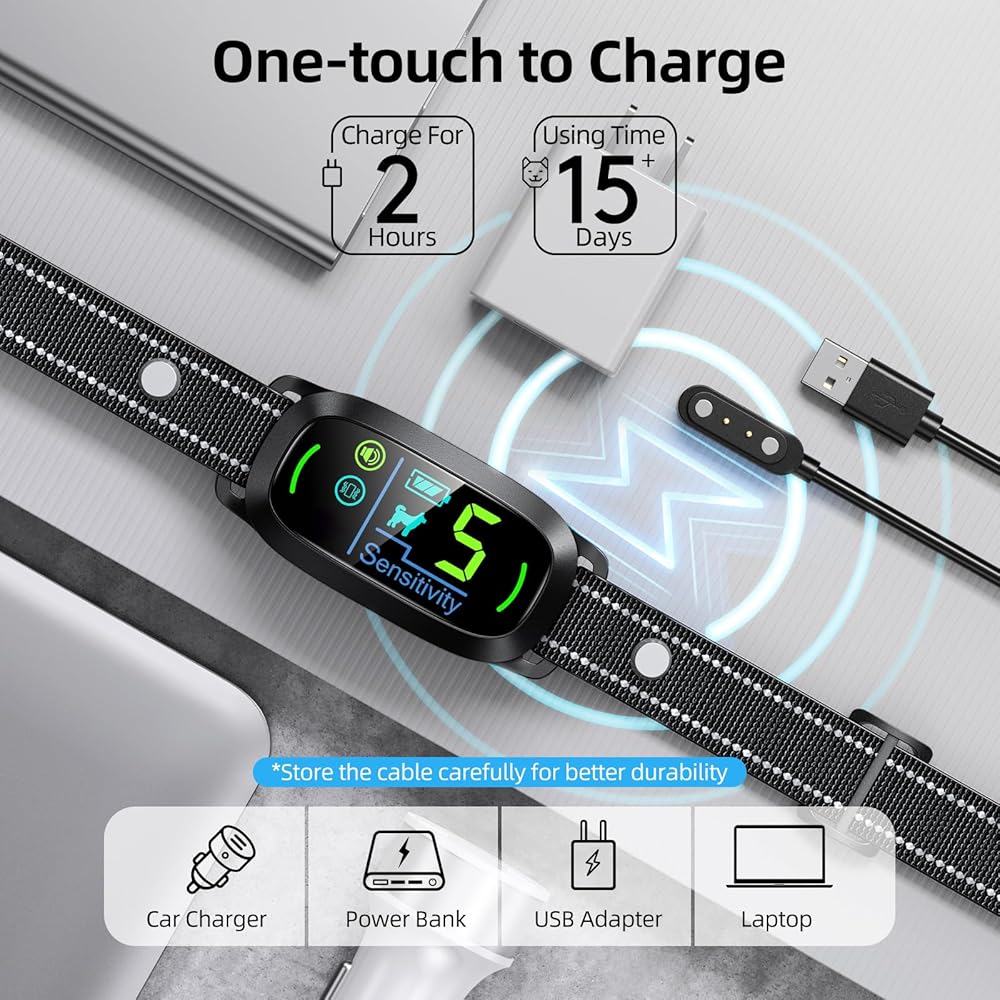 • 【شحن سريع ومقاوم للماء】: طوق النباح للشحن المغناطيسي الجديد للكلاب المتوسطة، تشغيل بسيط وشحن أكثر استقرارًا، شحن كامل خلال ساعتين يعمل لمدة 15 يومًا تقريبًا. طوق النباح للكلاب الكبيرة بتصميم مقاوم للماء بدرجة IP67، يمكنك الاستمتاع بوقت التدريب مع كلبك في حمام السباحة والحديقة والشاطئ والفناء الخلفي.