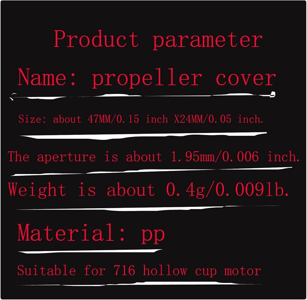 درع المروحة للطائرات بدون طيار الحجم حوالي 47 مم/0.15 بوصة × 24 مم/0.05 بوصة. الفتحة حوالي 1.95 مم/0.006 بوصة. الوزن حوالي 0.4 جم/0.009 رطل. يستخدم لـ 716 دعامة أكواب مجوفة، وملحقات أجهزة الحماية للطائرات بدون طيار.