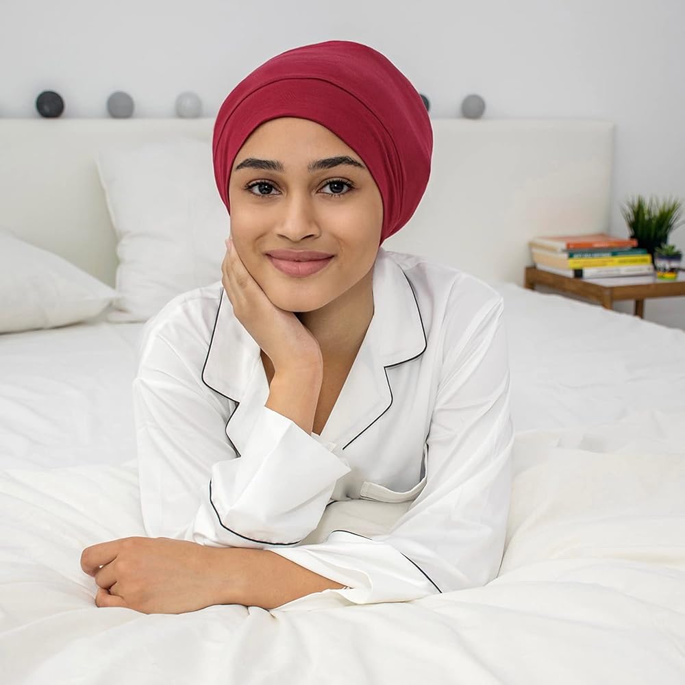 إكسسوار العناية بالشعر المثالي: توفر قلنسوة الشعر الحريرية حاجزًا ناعمًا وحريريًا بين شعرك والوسادة، مما يقلل من التقصف والتجعد وتساقط الشعر. بفضل تصميمه المريح والأنيق، فهو مثالي لجميع أنواع الشعر وملمسه.