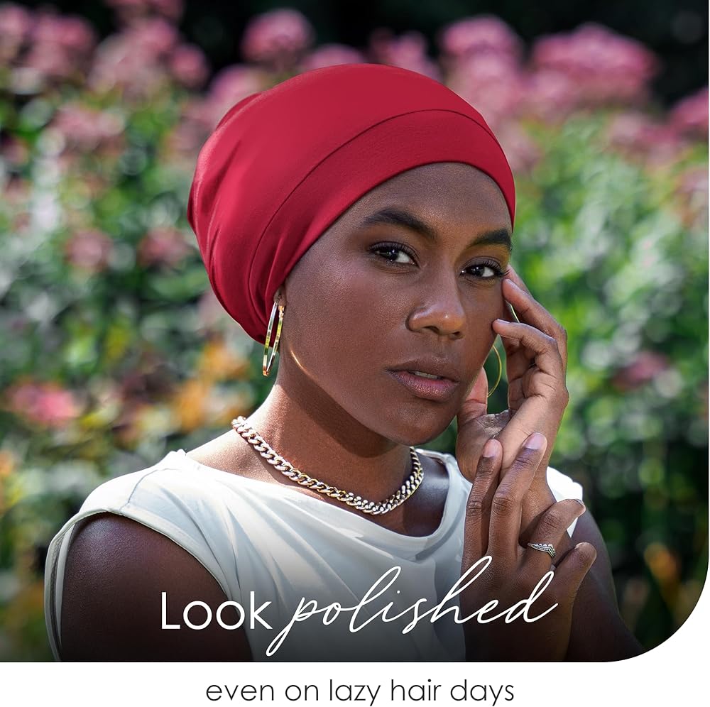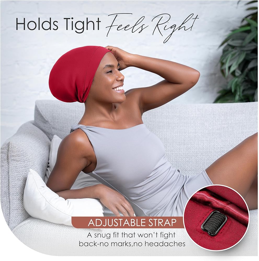 احمِ شعرك أثناء النوم: تساعد القلنسوة المصنوعة من الساتان على منع التجعد والتكسر والتشابك. احصل على نوم جيد ليلاً واستيقظ بشعر صحي وجميل.