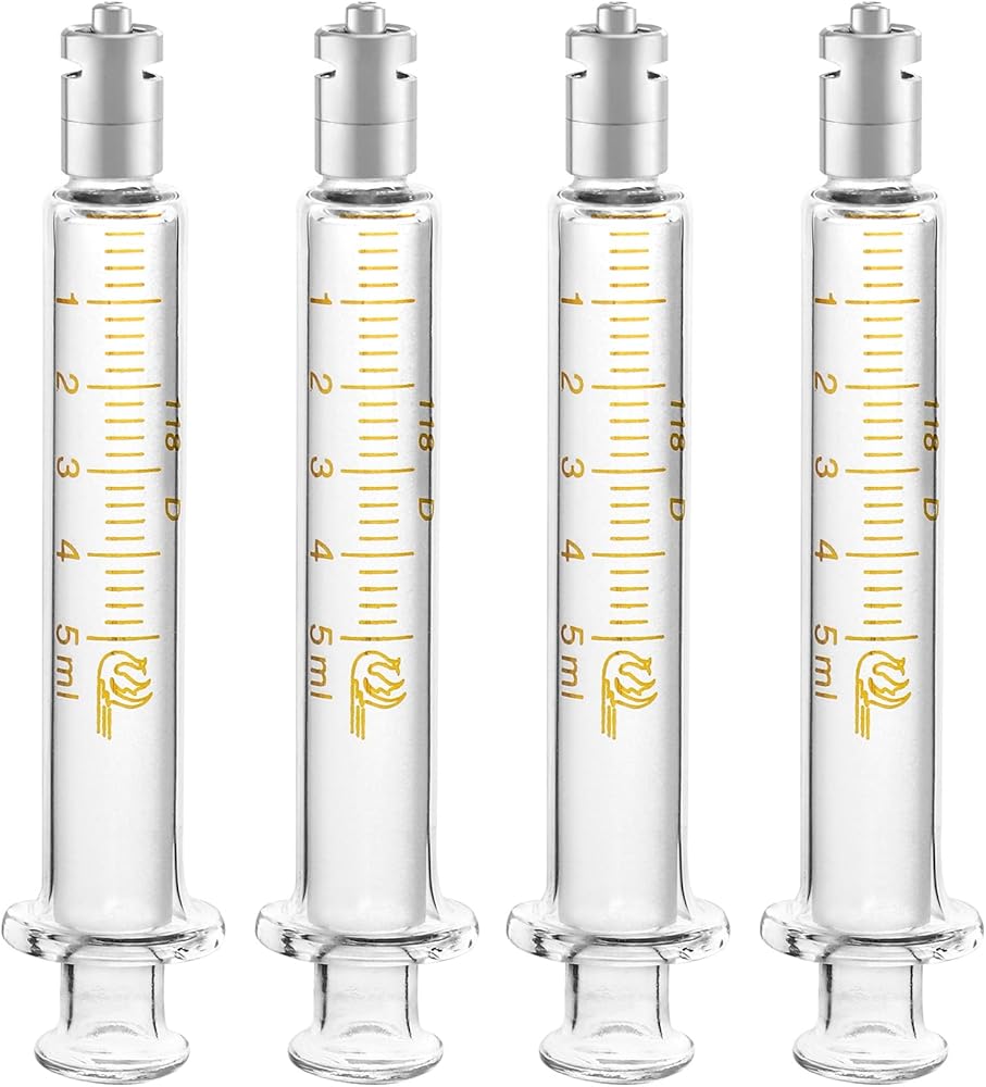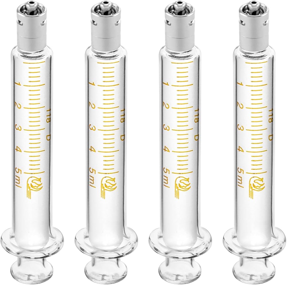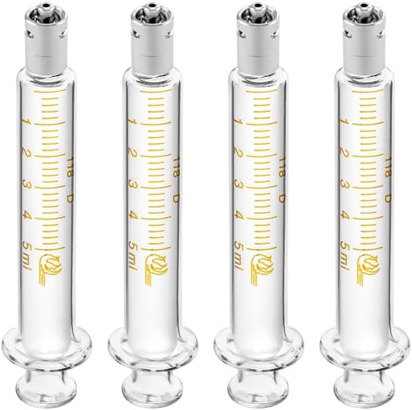 حقنة زجاجية قابلة لإعادة الاستخدام من QWORK Luer Lock بدون إبرة، 4 عبوات 5 مل حقنة قياس دقيقة للمختبرات