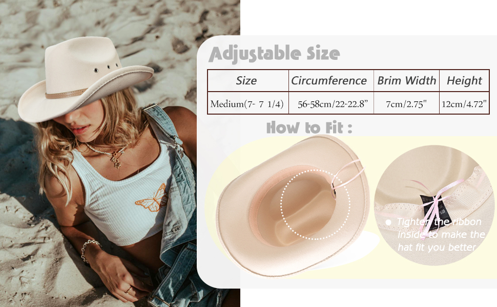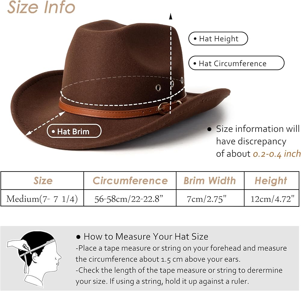 المقاس: محيط القبعة: 56-58 سم/22-22.8 بوصة؛ عرض الحافة: 7 سم/2.75 بوصة؛ الارتفاع: 11 سم/4.3 بوصة. حزام داخلي قابل للتعديل يناسب معظم الرجال والنساء