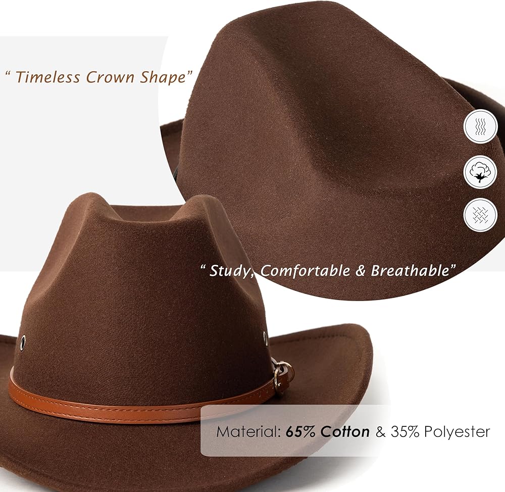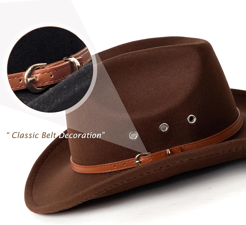 قبعة رعاة البقر الحديثة: هذه القبعة خفيفة الوزن، وتتميز بعصابة رأس ماصة للرطوبة داخل القبعة، وحافة منحنية ومدببة من الأمام لمظهر عصري على الطراز الكلاسيكي.
