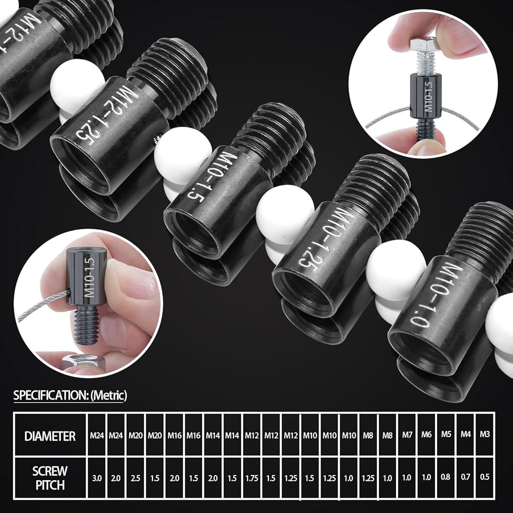 الأكسيد الأسود عبارة عن مقاييس مترية: يتضمن 21 رقمًا للأجزاء ذات الأحجام المترية: M3x0.5، M4x0.7، M5x0.8، M6x1.0، M7x1.0، M8x1.0، M8x1.25، M10x1.0، M10x1.25، M10x1 .5، M12x1.25، M12x1.5، M12x1.75، M14x1.5، M14x2.0، M16x1.5، M16x2.0، M20x1.5، M20x2.5، M24x2.0، M24x3.0.
