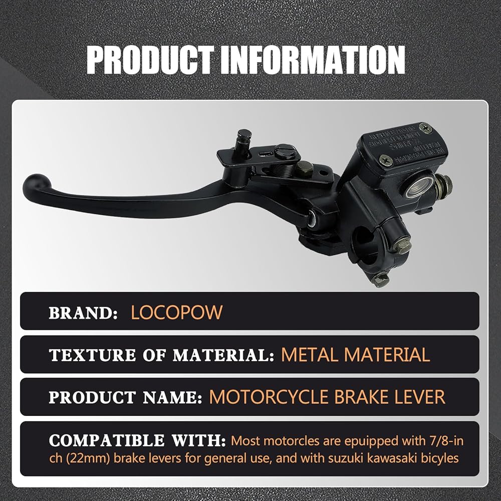 LOCOPOW 7/8 "اليد اليسرى الفرامل الهيدروليكية ليفر اسطوانة رئيسية للصينية 50cc-250cc 110cc 125cc ATV رباعية الترابية دراجة صغيرة الدراجة تاو تاو كولستر أبولو كازوما Sunl Roketa Lifan دراجة نارية