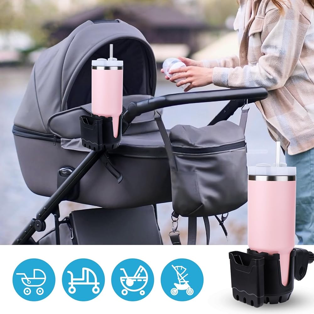 Perfect Size for The Stroller: The product is compatible with Stanley cup holder for the most size stroller which is from 0.55 inches to 1.7 inches. It would be a thoughtful gift for expectant mothers or friends who need to take care her baby.