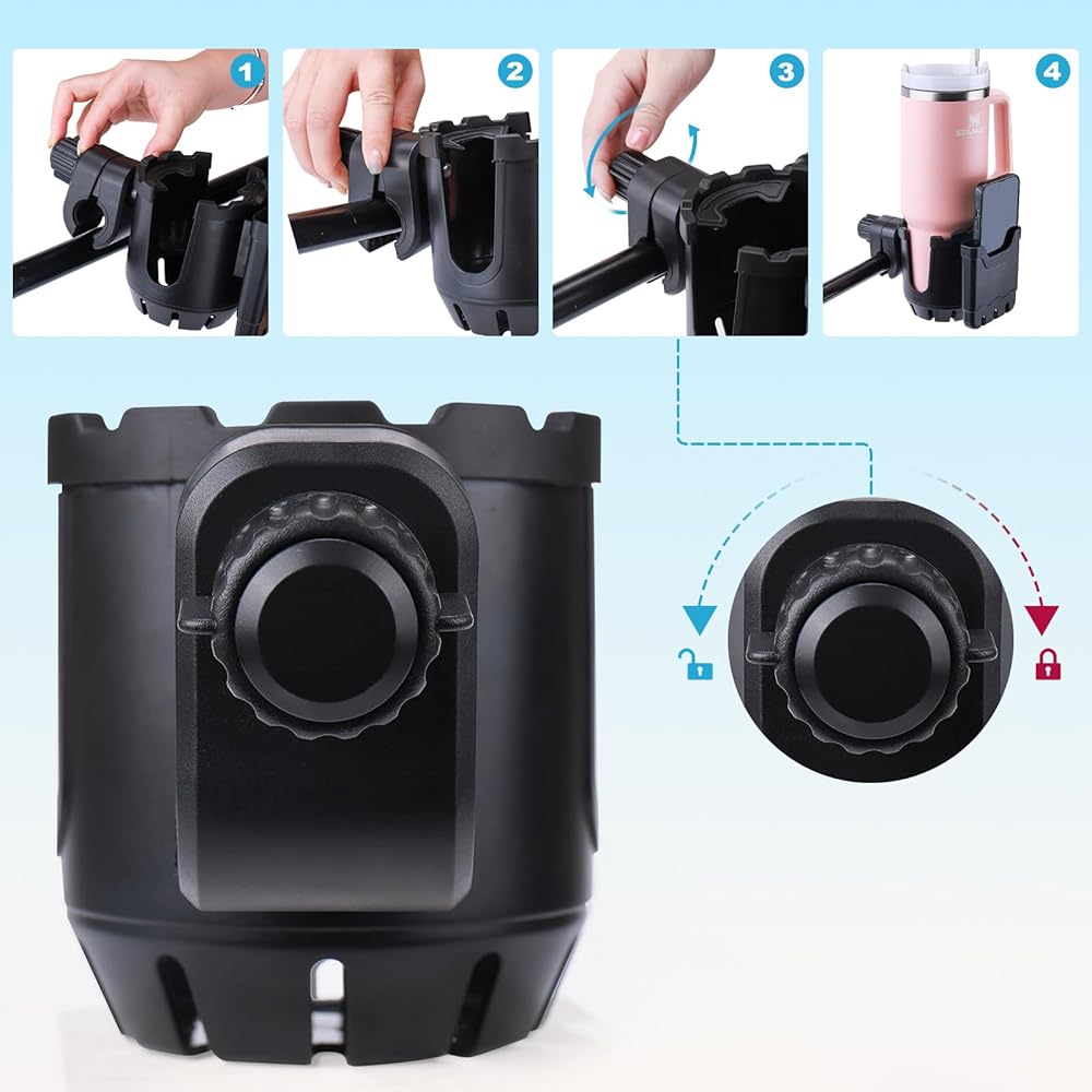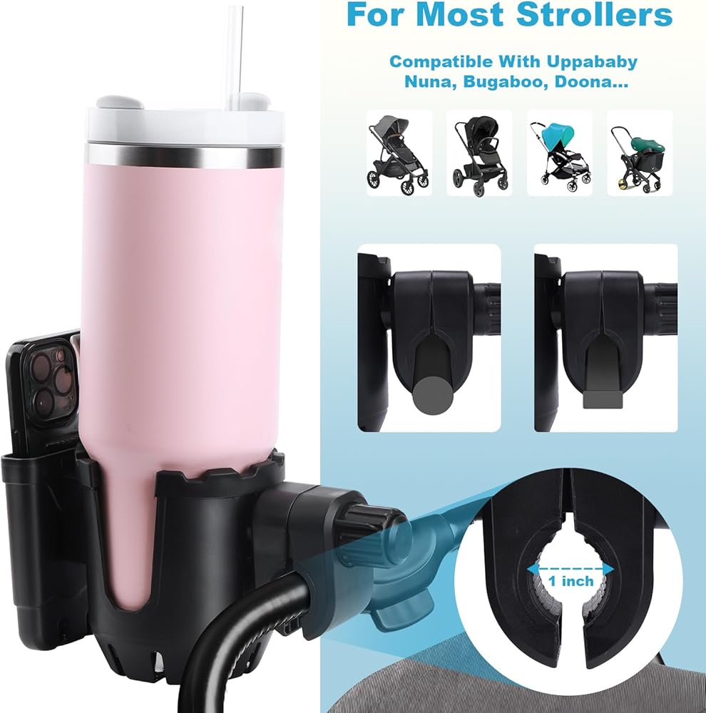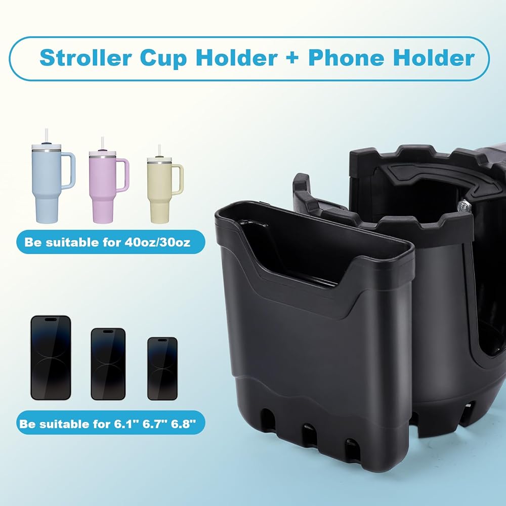 2-In-1: This stroller cup holder is both compatible with Stanley cup holder for stroller and Phone holder (be good for 6.1'' 6.7'' 6.8''). Your phone will now have its own place, and you'll always be able to find it at first.