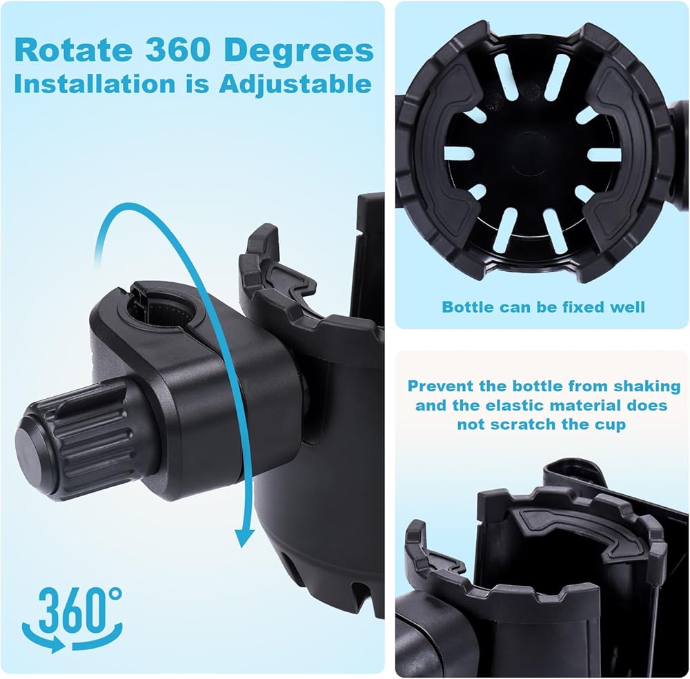 Professional Design: Come with rubber pad to avoid sliding design for clamp to clamps firmly on the the rod or handlebar, 360 degrees angles to adjust, install easily! It is so good for compatible with Stanley 40 oz (30 oz) tumbler with handle.