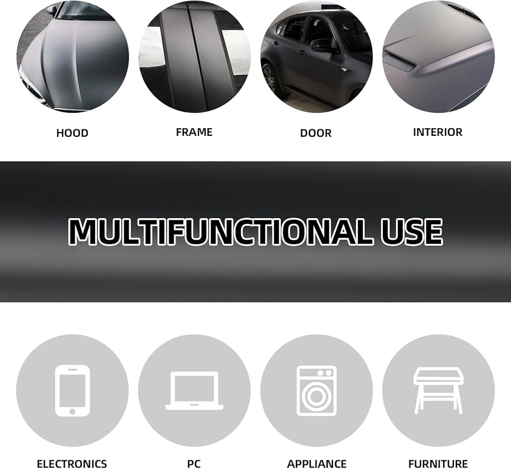 UV-Resistant: Our black vinyl wrap is UV-resistant, ensuring that the wrap will not fade or discolor, even when exposed to sunlight for extended periods. Cleaning is a breeze with just water, making it low-maintenance and ideal for any car enthusiast. Plus, our technical support team is always on hand to help you with any application questions you may have.