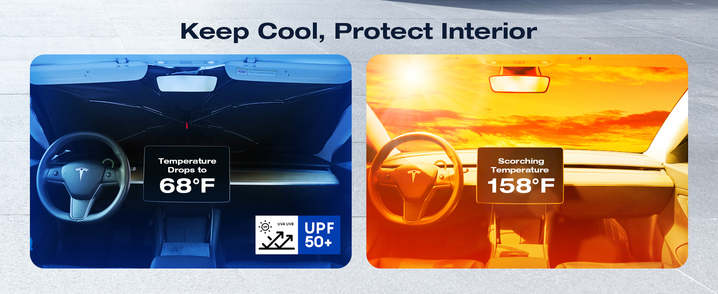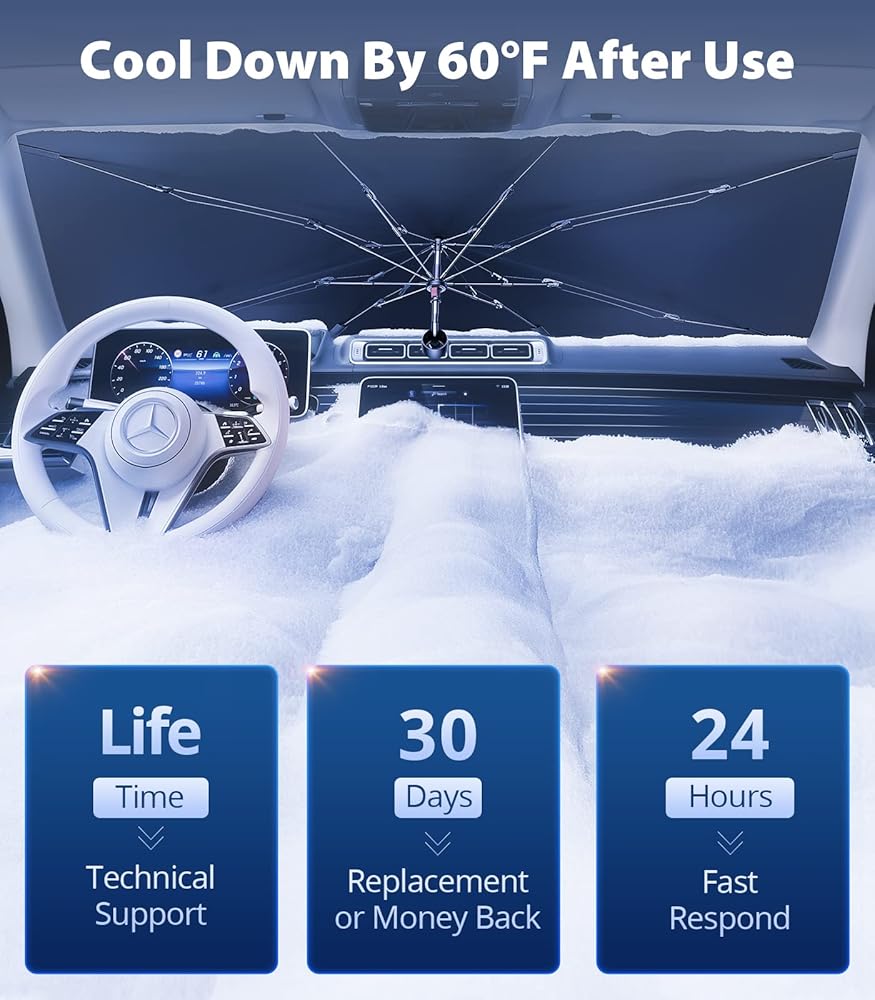 . الزجاج الأمامي لسيارتنا مصنوع من طلاء نانو تيتانيوم فضي وبطانة تبريد متعددة الطبقات. إنه يوفر عزلًا حراريًا ممتازًا ومؤشر انكسار عالي، مما يحافظ على برودة الجزء الداخلي لسيارتك في الصيف. تبريد فعال حتى 62 درجة فهرنهايت مع مظلة الشمس لنافذة السيارة، ستتم حماية سيارتك المحبوبة من التعرض لأشعة الشمس وستستمتع بتجربة قيادة رائعة!
