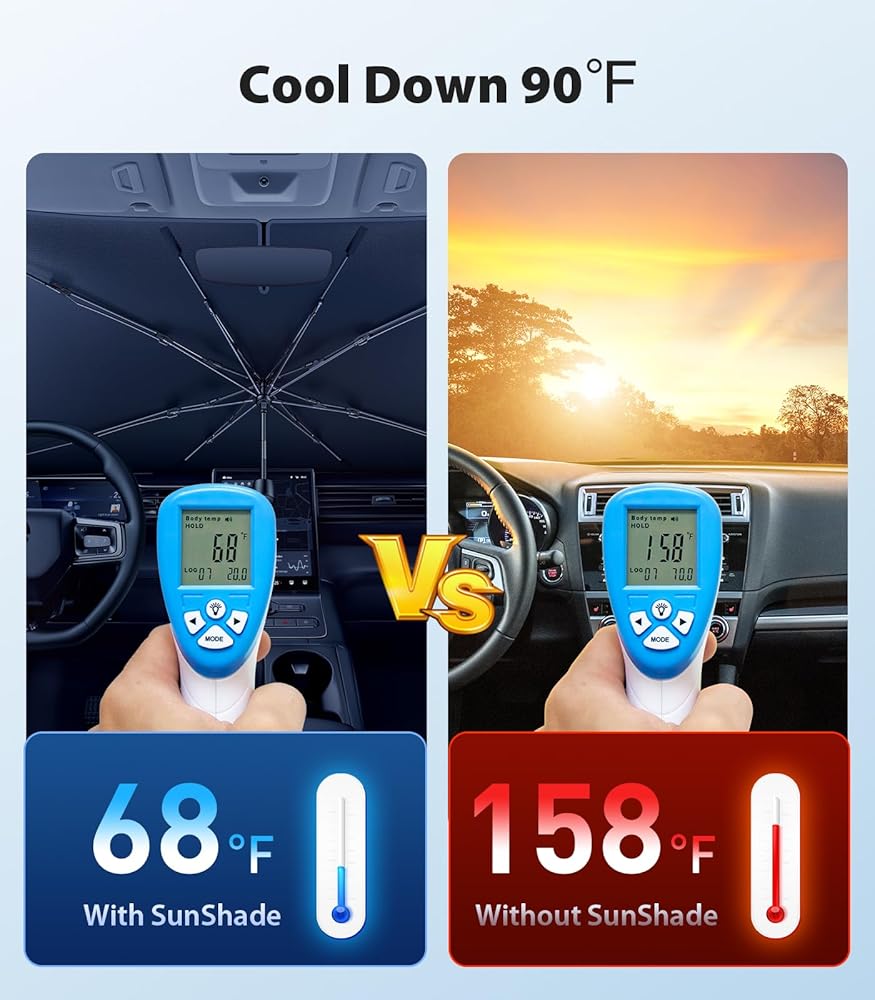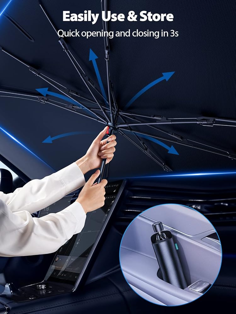 😇 𝗘𝘃𝗲𝗿𝘆 𝗦𝘂𝗺𝗺𝗲𝗿】تم اختبارها باستخدام 30,000 انحناء وبقيت سليمة، وأضلاع المظلة مصنوعة من الألياف الزجاجية، وهي مادة عسكرية مضادة للرصاص معروفة بصلابتها ومرونتها، والتي تضمن عدم الكسر أو الصدأ أو التآكل أبدًا. يضمن القماش متعدد الطبقات أن غطاء الشمس الخاص بسيارتنا لن يتدهور بمرور الوقت. استثمر لمرة واحدة في مظلة الشمس الخاصة بنا للزجاج الأمامي للسيارة واستمتع بفوائدها طويلة الأمد طوال فصول الصيف التي لا نهاية لها