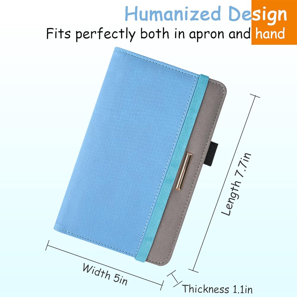 كتب الخادم للنادلة - محفظة جلدية لخادم النادل وكتاب النادل اللطيف ومنظم النادل، حامل دفتر شيكات الضيوف وجيب المال ومئزر الخادم، أزرق