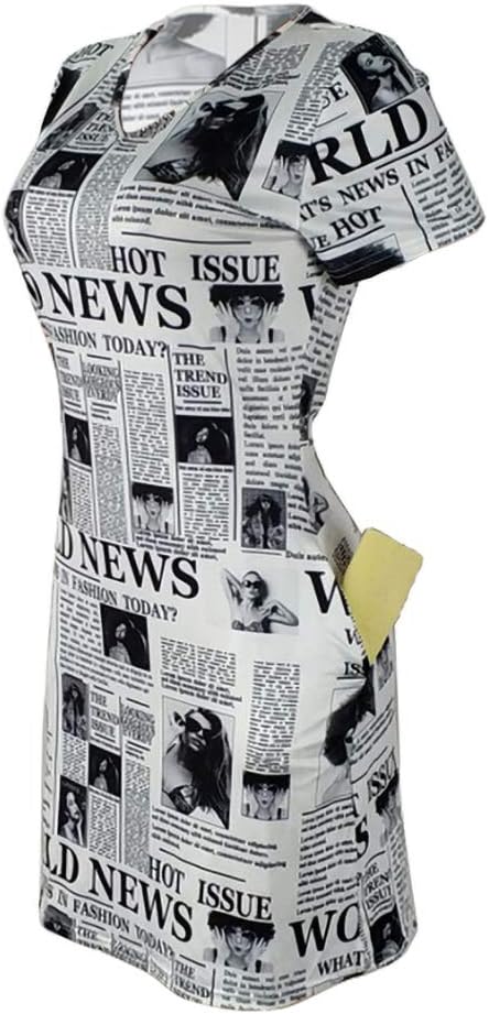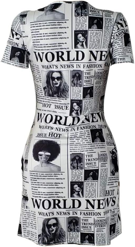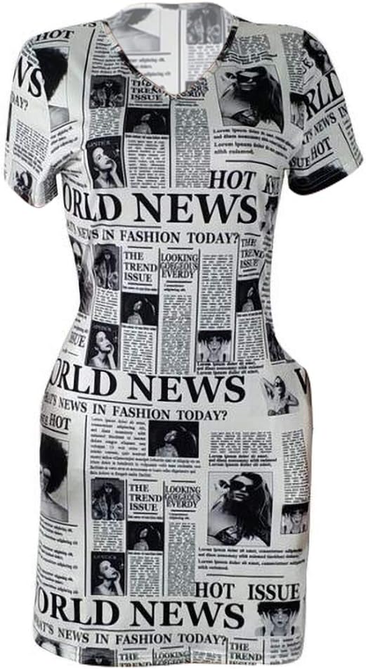 ❀ المزايا: نمط صحيفة عصري، رقبة على شكل حرف V، أكمام قصيرة، فستان صيفي كاجوال ضيق، طول فوق الركبة، فستان تي شيرت بمقاس كبير، فستان صيفي متوسط الطول بطباعة حروف مع جيب.