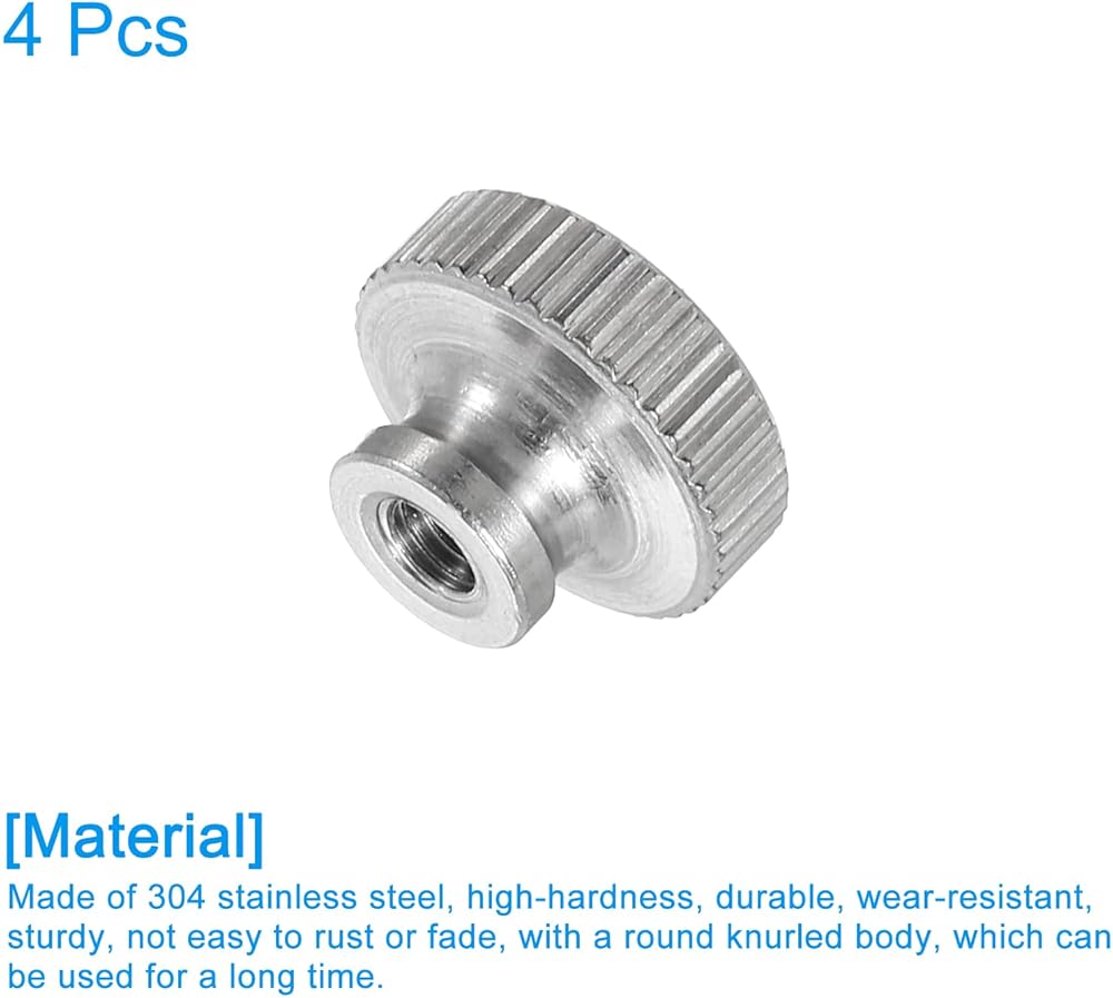 [Material] Our knurled thumb nuts are made of 304 stainless steel, high-hardness, durable, wear-resistant, sturdy, not easy to rust or fade, with a round knurled body, which can be used for a long time.