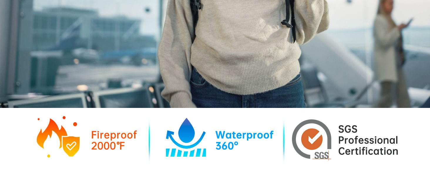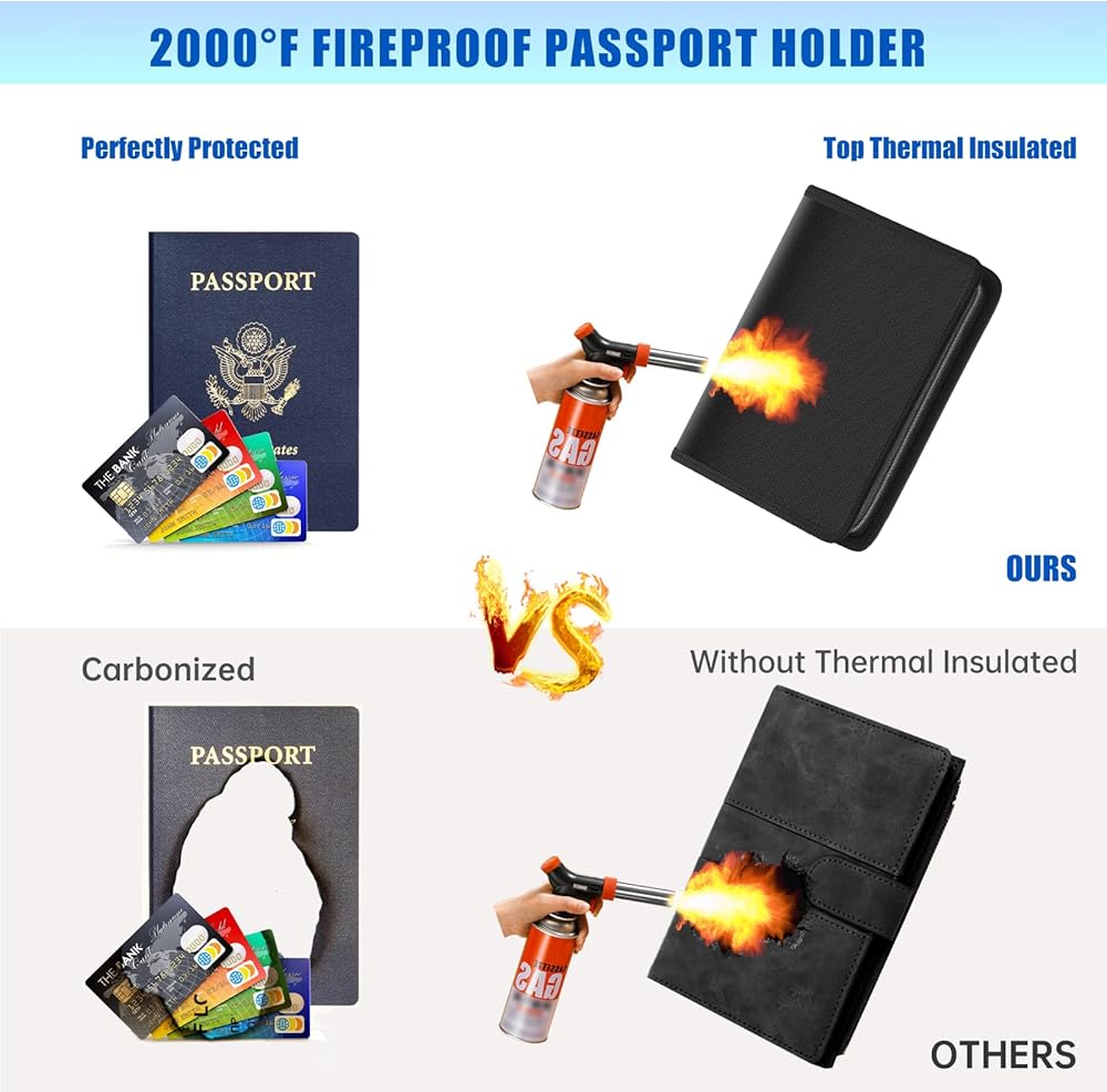 • مقاوم للحريق ومقاوم للماء وأساسيات السفر: حامل جواز السفر الخاص بنا مصنوع من ألياف زجاجية مطلية بالسيليكون غير قابلة للحكة وغير قابلة للالتصاق ومقاومة للغبار والتي تتحمل درجات حرارة تصل إلى 2200 درجة فهرنهايت والتي اجتازها اختبار SGS (معتمد من UL94 VTM-0). في حالة الحريق، توفر لك محفظة جواز السفر وقتًا أكثر قيمة لإنقاذ بطاقة هوية جواز السفر الخاصة بك، وما إلى ذلك. إذا كنت مهتمًا بأمن الخصوصية وتبحث عن حافظة جواز السفر، فإن حافظة جواز السفر RFID المحمية المقاومة للحريق هي بالتأكيد مناسبة لك.