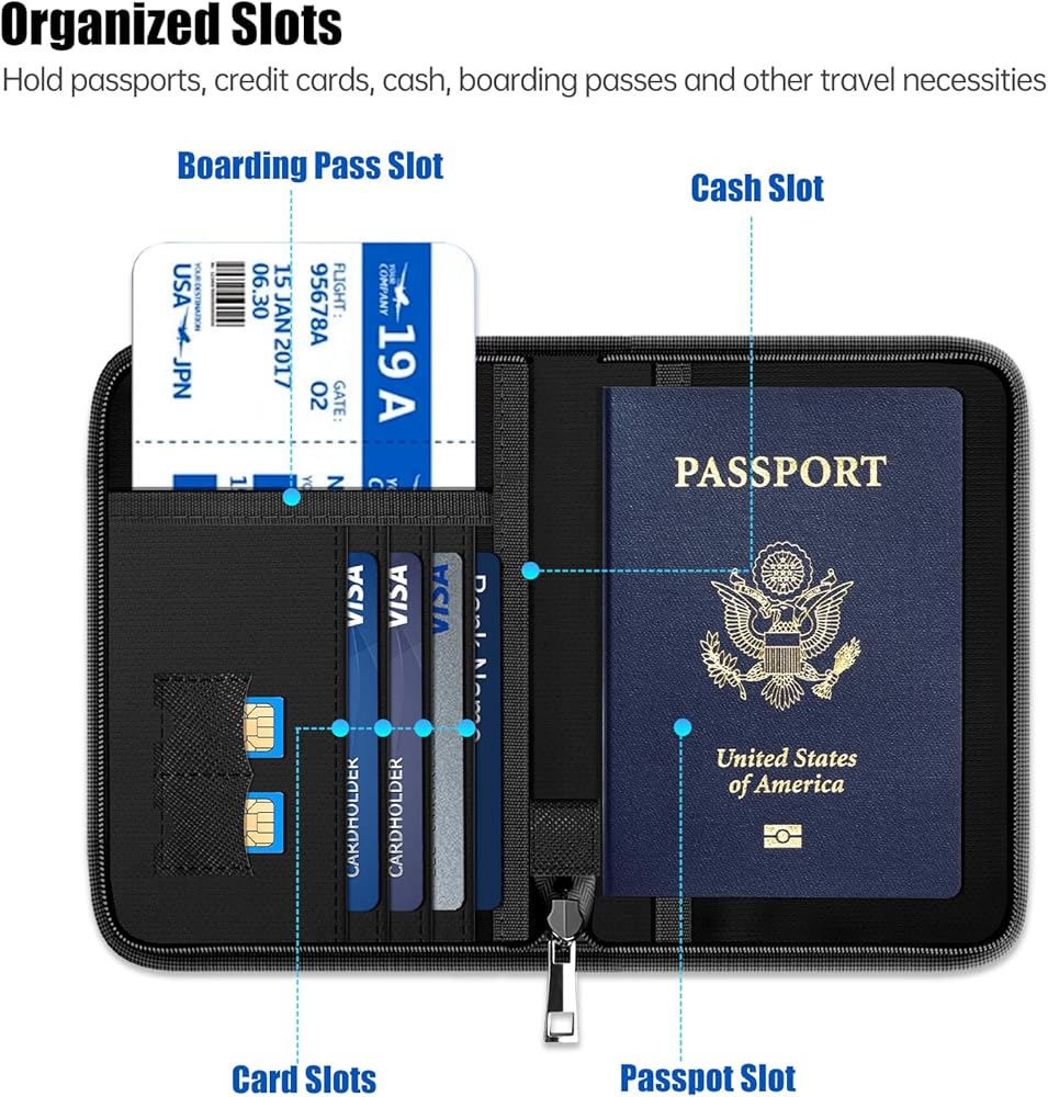 • الكثير من الجيوب والمحمولة: يبلغ مقاس محافظ جواز السفر الخاصة بنا 6.3 × 4.3 بوصة، ويمكن وضعها بسهولة داخل جيبك أو حقيبتك. يحتوي حامل جواز السفر RFID على الكثير من فتحات الجيب لاستيعاب جوازات السفر وبطاقات التطعيم وتذاكر الطيران وبطاقات العمل وبطاقات الائتمان والنقود وبطاقات الصعود وبطاقات SIM وغيرها من المتعلقات الشخصية. حفظ المستندات بشكل أنيق ومنظمة. تم تصميم السحاب لمنع سقوط العناصر عن طريق الخطأ ويتطلب إغلاق السحاب بالكامل لمنع إشارات RFID تمامًا.