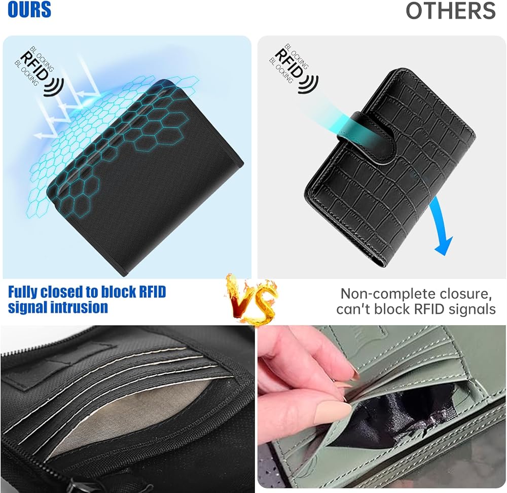 • حجب RFID متعدد التردد لمنع السرقة: يمكن للصوص اعتراض البيانات من خلال خصائص النقل اللاسلكي RFID، وسرقة أموال بطاقة الائتمان ومعلومات الهوية، إلخ. تحتوي أغطية جواز السفر الخاصة بنا على مادة حماية RFID مدمجة، والتي يمكنها حجب إشارات RFID عالية التردد 13.56 ميجا هرتز من خلال مادة حماية خاصة لتحقيق حجب إشارات RFID. يمكنه منع الاحتيال في بطاقات الائتمان، وبطاقة الهوية، وبطاقة لقاح CDC وغيرها من تسرب المعلومات، وحماية شاملة لخصوصيتك.