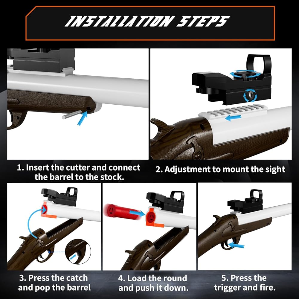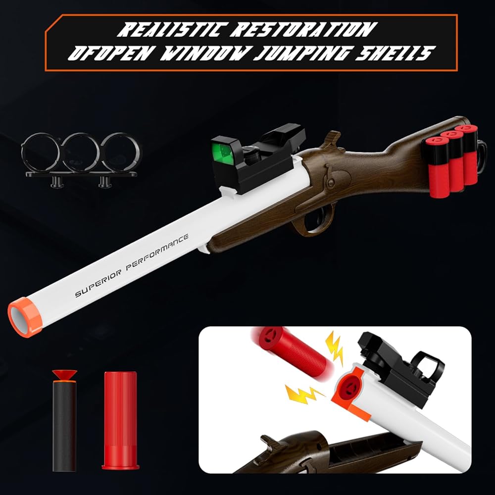 【 لعبة رائعة】هذه مسدس لعبة رائع، افتح المجلة، وقم بتحميل رصاصة واحدة واسحب المضخة للخلف، واسحب الزناد لإطلاق النار. عند إعادة التحميل، سيتم التخلص من علبة خرطوشة الرصاصة الأخيرة، حتى تتمكن من الحصول على تجربة بندقية حقيقية.