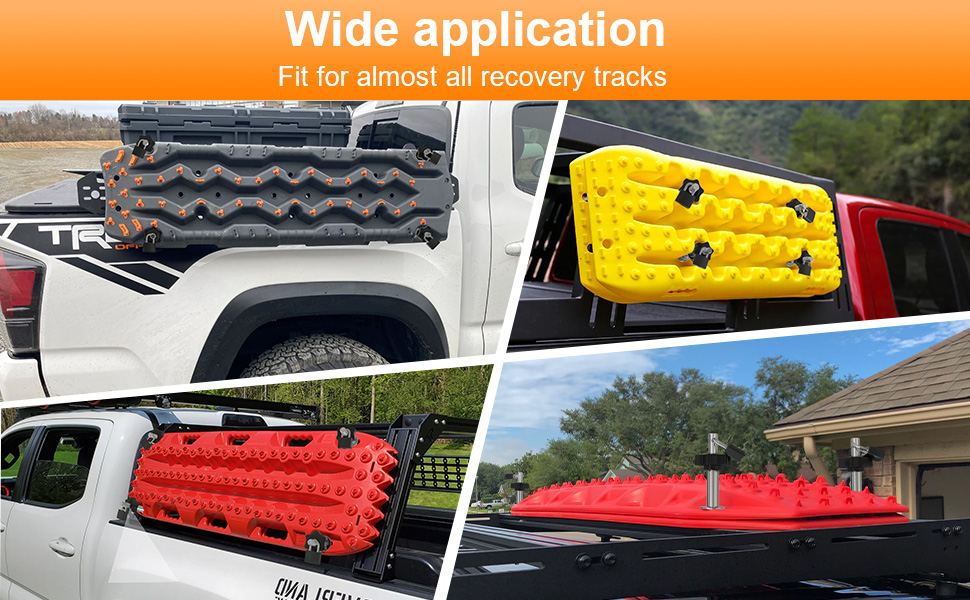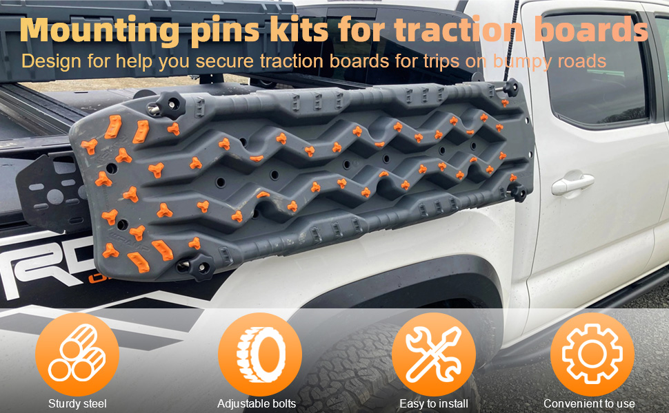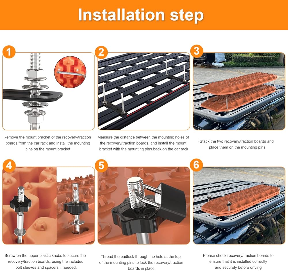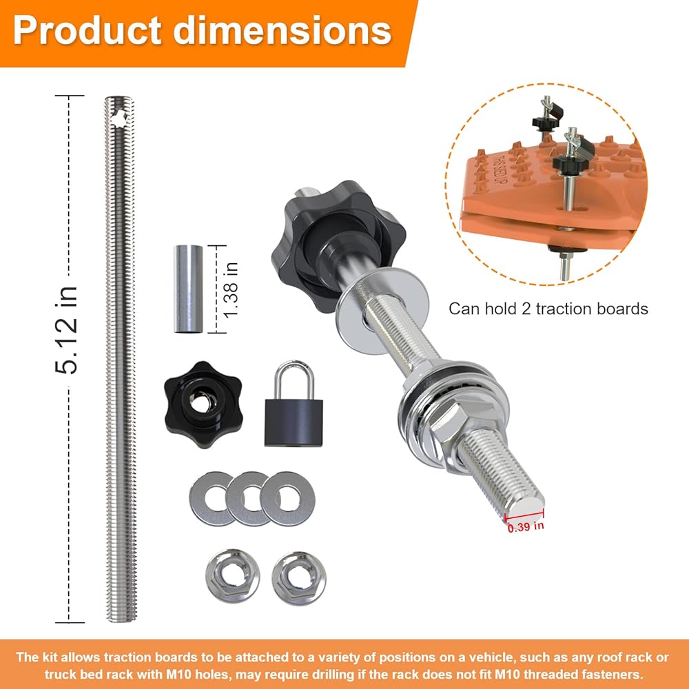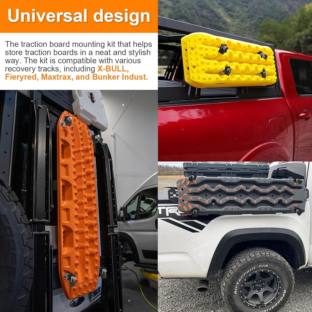 【 تصميم عالمي 】 تساعد مجموعة تركيب لوحة الجر على تخزين لوحات الجر بطريقة أنيقة وأنيقة. المجموعة متوافقة مع مسارات الاسترداد المختلفة، بما في ذلك X-BULL وFieryred وMaxtrax وBunker Industry. يبلغ طول دبابيس التثبيت 16.3 سم ويمكنها حمل لوحتي جر. تسمح المجموعة بربط لوحات الجر في مجموعة متنوعة من المواضع على السيارة، مثل أي رف سقف أو رف سرير شاحنة مزود بفتحات M10 وقد يتطلب الحفر إذا كان الحامل لا يقبل السحابات الملولبة M10.