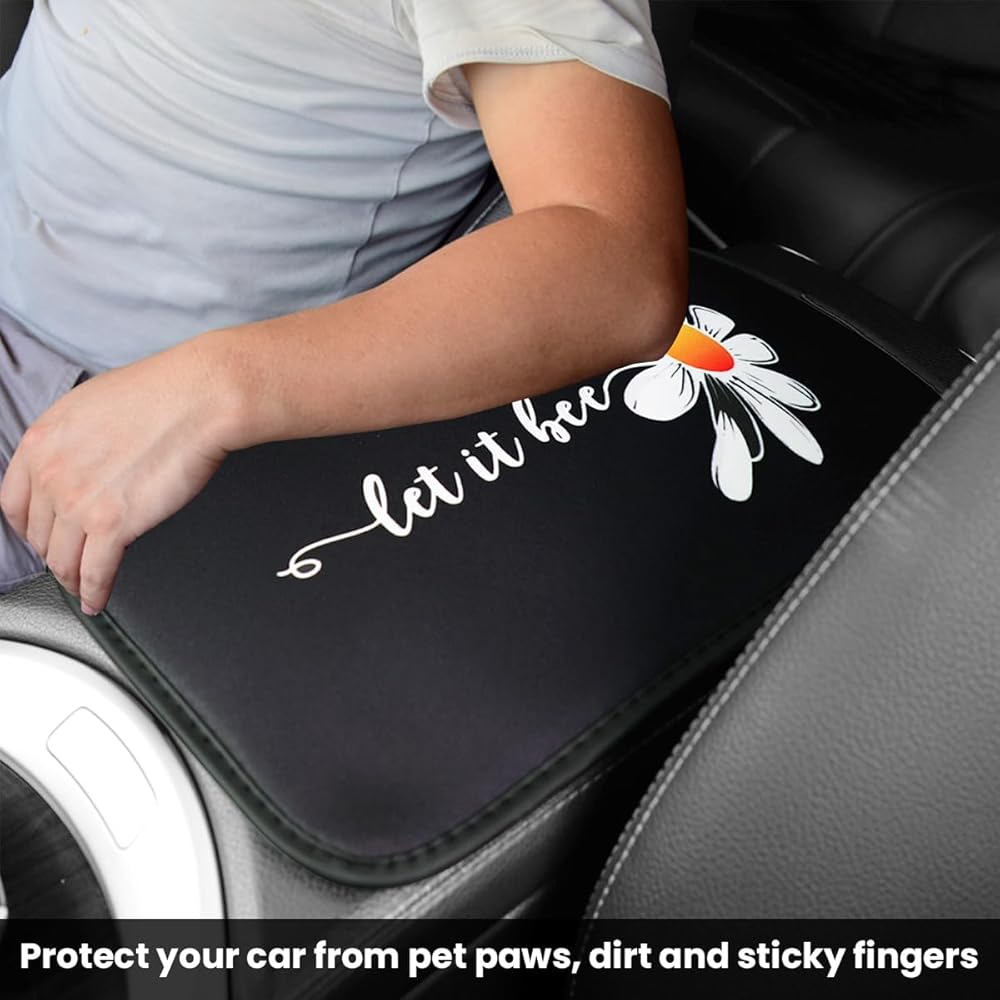 وسادة وحدة التحكم المركزية للسيارة، واقي غطاء صندوق مسند ذراع السيارة على شكل زهرة، وسادة صندوق مسند ذراع تلقائي غير قابلة للانزلاق للنساء والرجال، ملحقات السيارة الداخلية ديكور لمعظم السيارات والمركبات وسيارات الدفع الرباعي (زهرة)