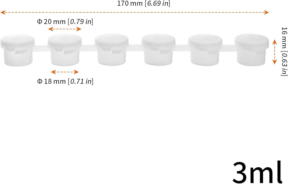 LARGE QUANTITY - The package contains 100 strips of 3 ml paint container strips, each strip with 6 small empty cups, a total of 600 cups. The capacity of each cup is about 3ml/0.1oz, the quantity is sufficient to meet your daily needs.