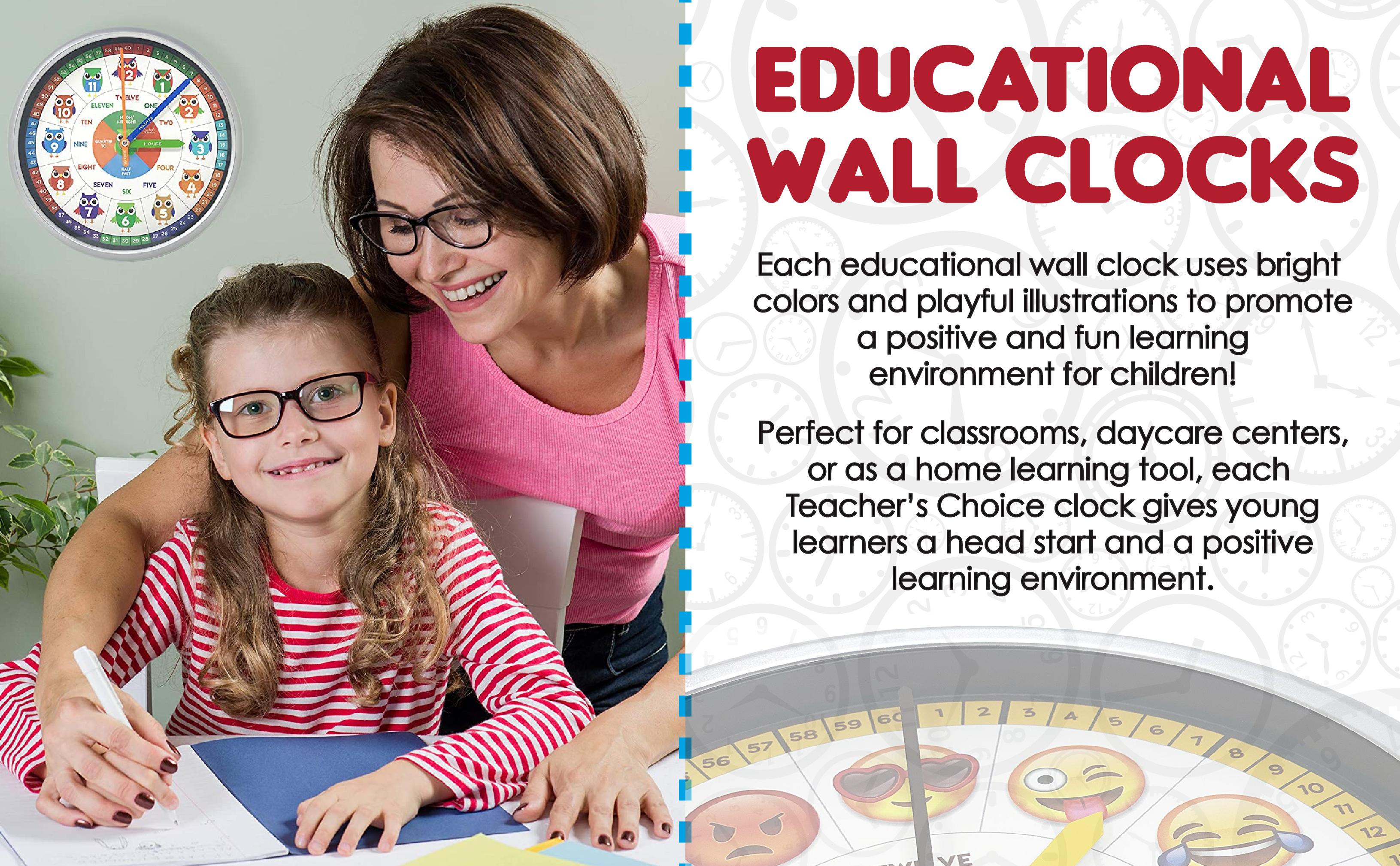 مع ساعة التعلم من اختيار المعلمين، سيكون المتعلم الصغير الخاص بك على المسار الصحيح! مثالية للفصول الدراسية ومنزلك، قمنا بإنشاء ساعة تعليمية تقدم مفهوم الوقت بطريقة إيجابية ممتعة.