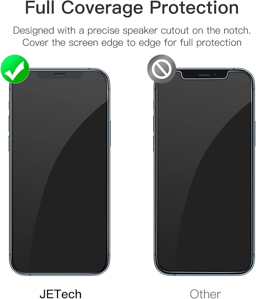 واقي شاشة بتغطية كاملة من JETech لهاتف iPhone 12 Pro Max مقاس 6.7 بوصة، طبقة من الزجاج المقوى بحافة سوداء مع أداة تثبيت سهلة، صديق للحافظة، شفاف عالي الدقة، 3 عبوات