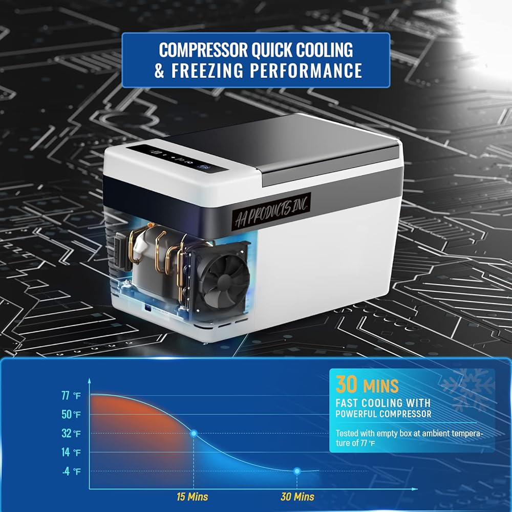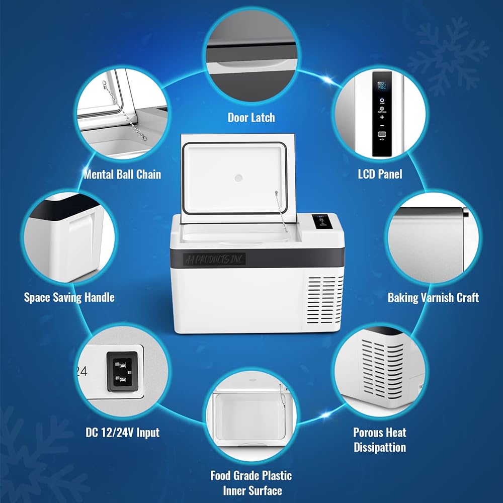 ثلاجة السيارة التي تعمل بالضاغط نظام التبريد المتكامل للضاغط ومبخر الألومنيوم يجعل مبرد السيارة الكهربائية يعمل بشكل جيد على التبريد السريع. انخفاض درجة الحرارة إلى 14 درجة فهرنهايت في 30 دقيقة فقط عند درجة حرارة محيطة 70 درجة فهرنهايت. التحكم الرقمي الدقيق في درجة الحرارة على ثلاجة السيارة 12 فولت هو الأفضل درجة الحرارة. تحافظ الحشية المغناطيسية والعزل السميك على التبريد لفترة أطول للمبرد الكهربائي بعد إيقاف التوصيل.