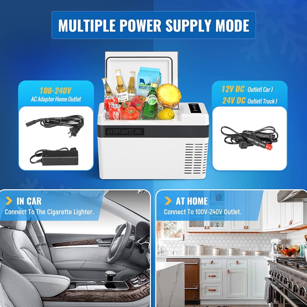 حل متعدد الطاقة: يمكن تشغيل الفريزر المحمول من المنزل والطاقة الشمسية باستخدام محول تيار متردد، ومباشرة بواسطة تيار مستمر 12 فولت/24 فولت. أثناء التشغيل، يبلغ صوت الثلاجة 12 فولت حوالي 45 ديسيبل، مما لن يؤثر على قيادتك وراحتك.
