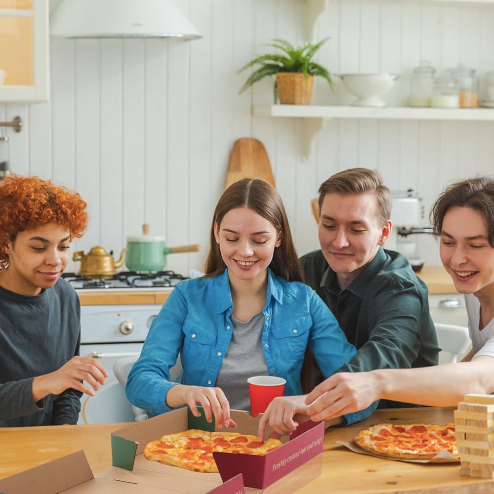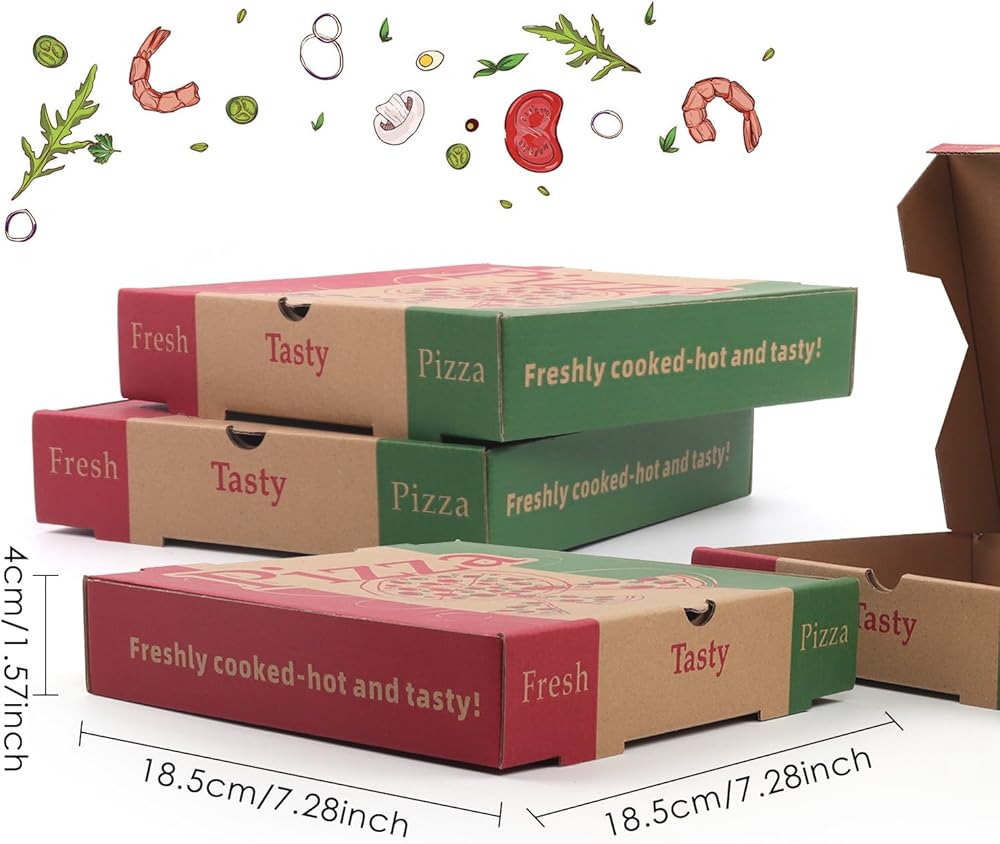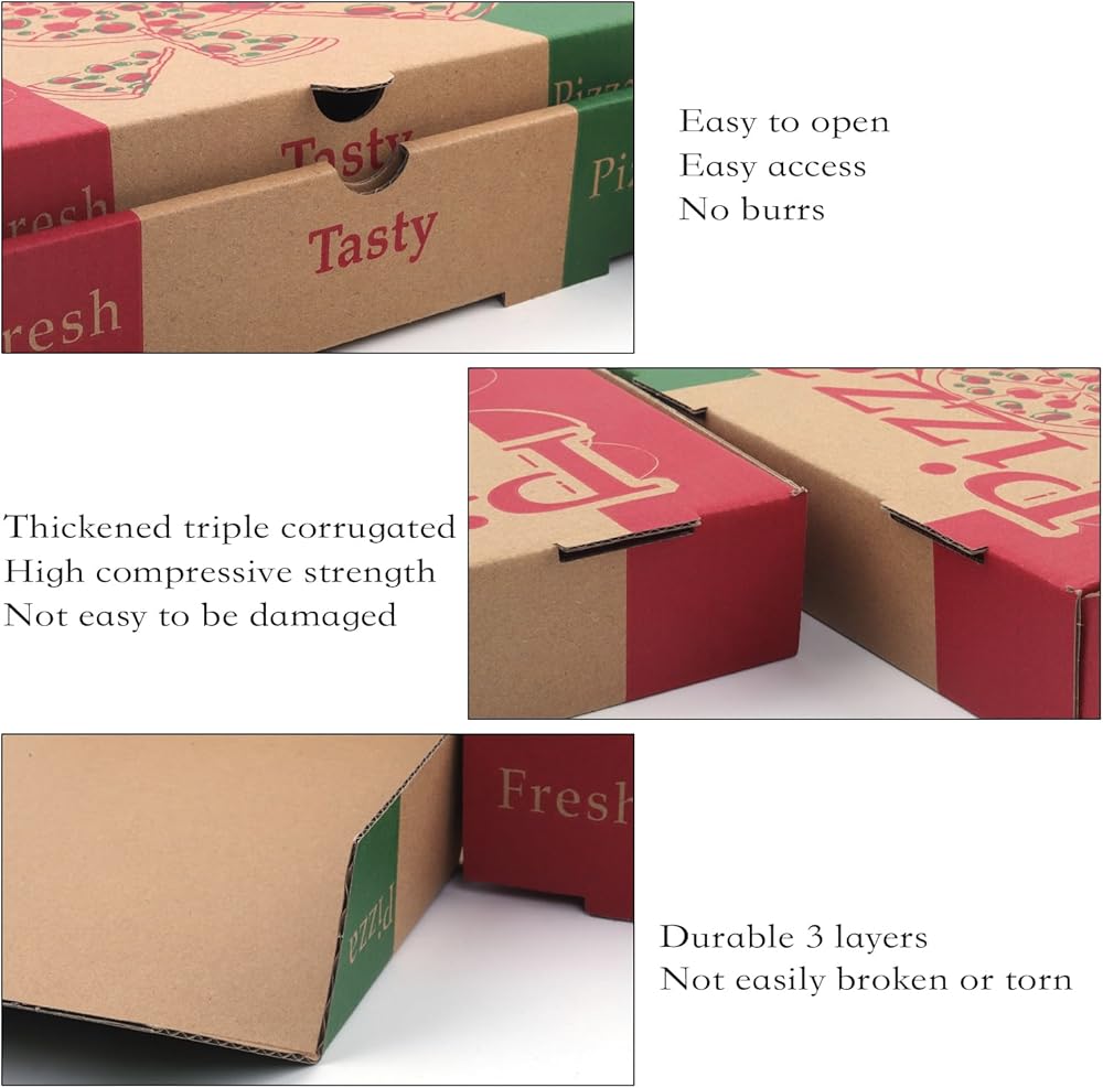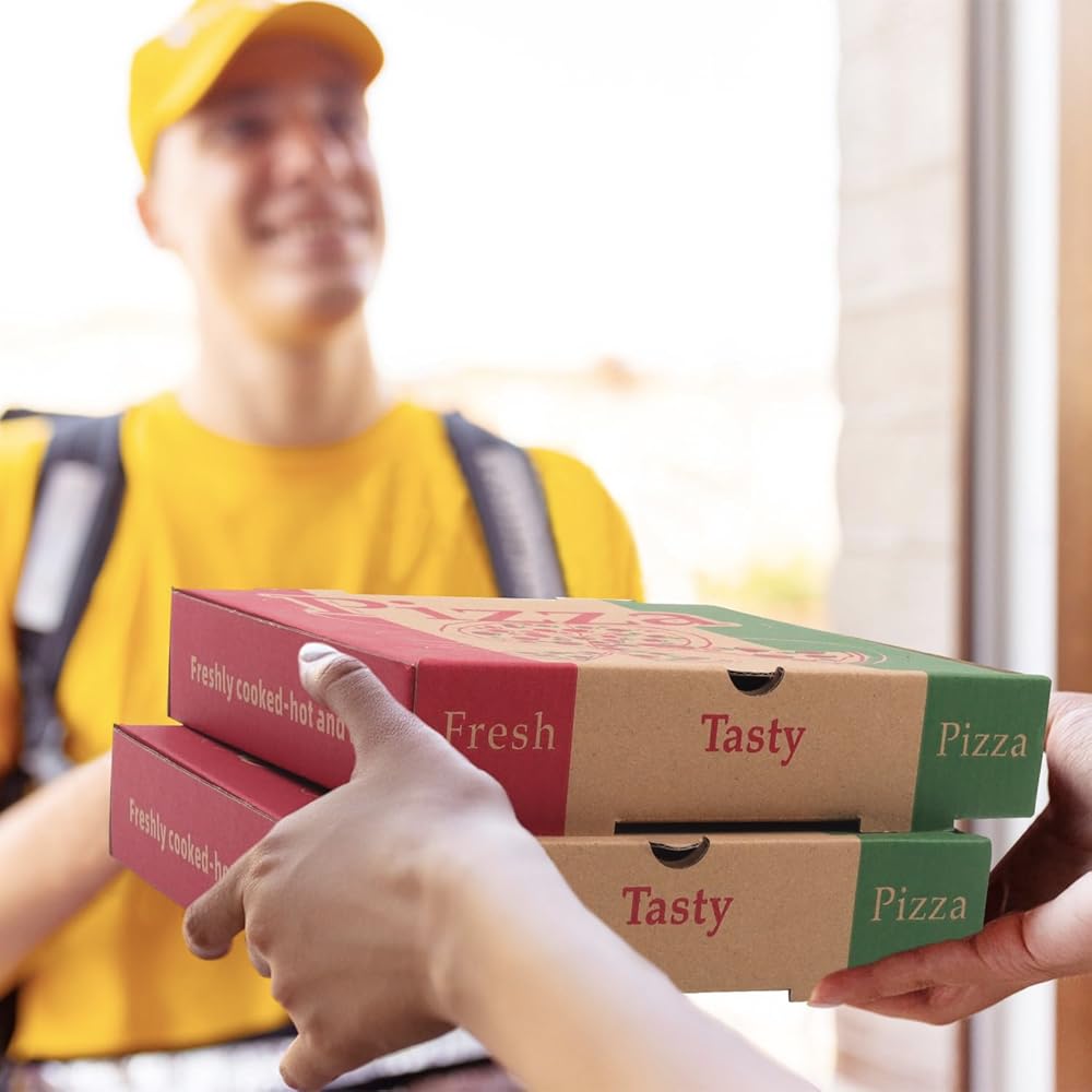 【توصيل آمن للطعام وإرساله بالبريد】- أرسل هداياك الصالحة للأكل أو قم بتوصيل الوجبات الجاهزة بثقة باستخدام علب البيتزا المموجة. يوفر التصميم المموج حماية معززة، مما يضمن وصول البيتزا أو الحلويات الخاصة بك في حالة لا تشوبها شائبة. اختر صناديقنا للحصول على حل بريدي وتوصيل الطعام خالي من المتاعب، مما يعكس تفانيك في الجودة.