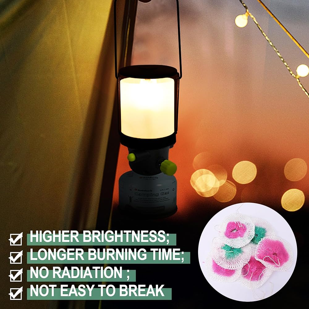 جودة عالية: مصنوعة من حرير الرايون الخالي من الثوريوم، تتميز أغطية فانوس البروبان بمقاومة درجات الحرارة العالية، وسطوع عالٍ، ومقاومة قوية للصدمات وليس من السهل كسرها. لا يوجد إشعاع، الرفيق المثالي لك.